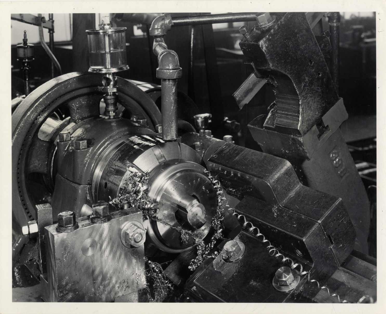 Favorite this☆ Automatic lathe Description: View of an automatic lathe. Label on back: "Figure IV. Converted machine turning O.D." Handwritten on back: "Conversion." Details Resource ID: na032657 Subject: Lathes Collets Industrial mobilization Automotive Council for War Production--Archives Photographic prints Format: 1 photographic print ; 8 x 10 in. Member of: National Automotive History Collection Filing Location: MS84/Automotive Council for War Production, Conversion, 86:6 Rights: Physical rights are retained by DPL. Copyright is retained in accordance with U.S. copyright laws.