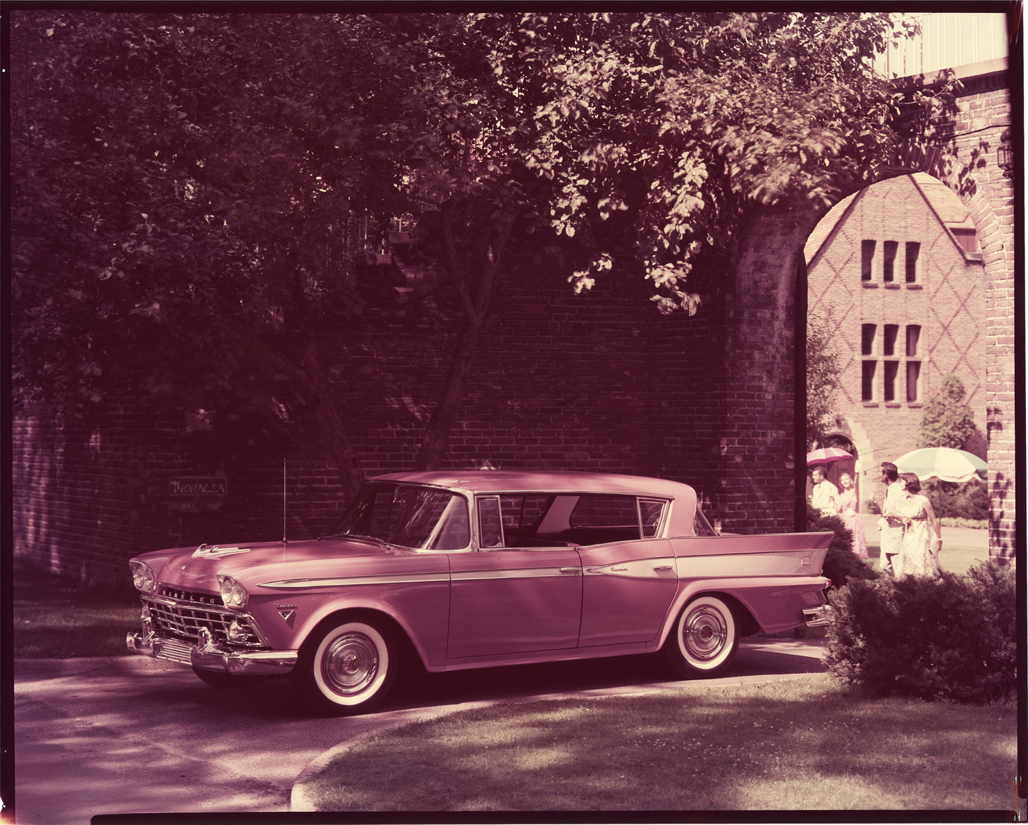 Favorite this☆ 1959 AMC Rambler Rebel Custom automobile Description: View of 1959 AMC Rambler Rebel Custom sedan. Brick building in background; men and women are visible through archway. Label on sleeve: "AMC, Rambler Rebel Custom, 1959." Details Resource ID: na032764 Creator: Boulevard Photographic (Firm) Subject: Rambler automobile Rebel automobile Advertising--Automobiles Transparencies Date Issued: 1959 Format: 1 transparency : col. ; 8 x 10 in. Member of: National Automotive History Collection Mickey McGuire and Jim Northmore Boulevard Photographic Collection Filing Location: AMC, 1:2 Rights: Physical rights are retained by DPL. Copyright is retained in accordance with U.S. copyright laws.
