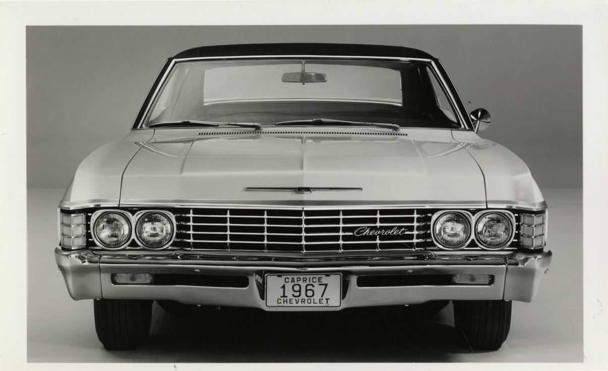 Favorite this☆ 1967 Chevrolet Caprice automobile Description: Front view of a 1967 Chevrolet Caprice coupe. Stamped on back: "GM Photographic, 465 W. Milwaukee, Detroit, Mich. Please refer to this number when ordering prints." Handwritten on back: "1967 Chevrolet Caprice." Details Resource ID: na032903 Creator: GM Photographic Subject: Caprice automobile Photographic prints Date Issued: 1967 Format: 1 photographic print ; 5 x 8 in. Member of: National Automotive History Collection Filing Location: Chevrolet, 1967 Negative Number: X51500-137 Rights: Physical rights are retained by DPL. Copyright is retained in accordance with U.S. copyright laws.