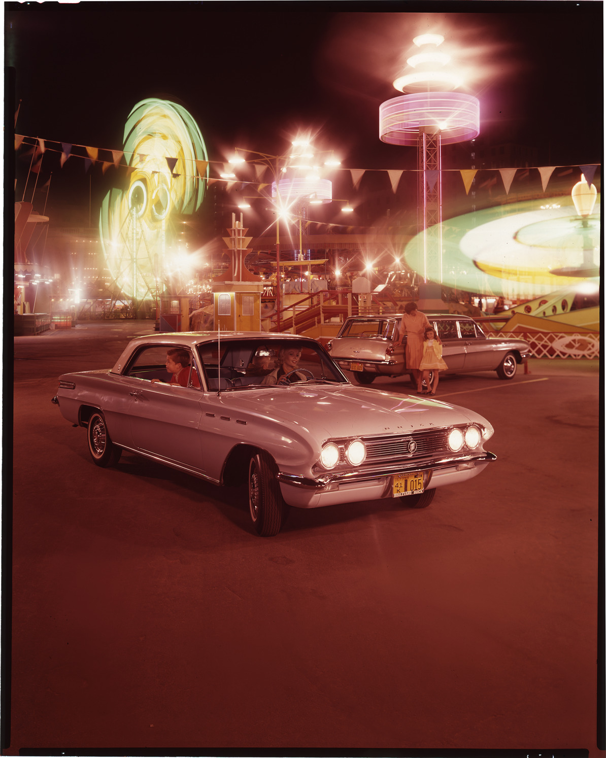 Favorite this☆ 1961 Buick Special automobiles Description: Nighttime view of women and children posing with 1961 Buick Special coupe and station wagon. Carnival rides in background. Label on sleeve: "General Motors, Buick Special, 1961." Details Resource ID: na033013 Creator: Boulevard Photographic (Firm) Subject: Buick Special automobile Station wagons Advertising--Automobiles Transparencies Date Issued: 1961 Format: 1 transparency : col. ; 10 x 8 in. Member of: National Automotive History Collection Mickey McGuire and Jim Northmore Boulevard Photographic Collection Filing Location: Buick, 1:13 Rights: Physical rights are retained by DPL. Copyright is retained in accordance with U.S. copyright laws.
