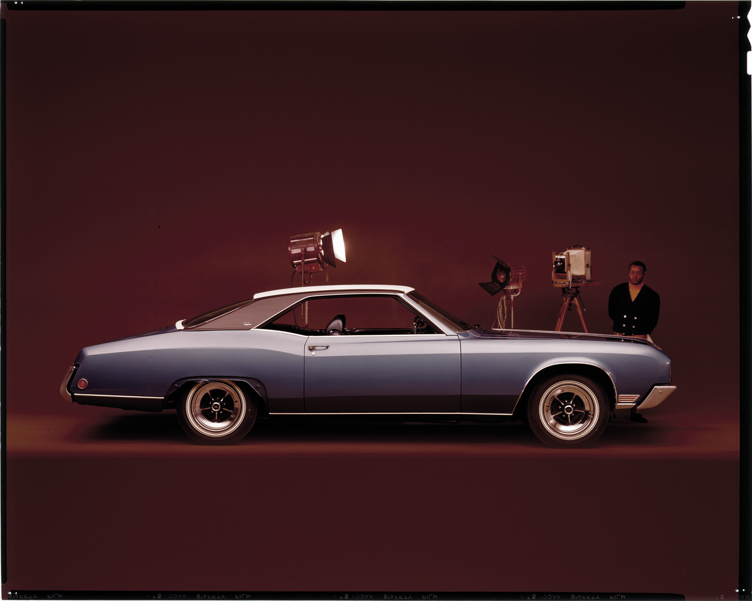 Favorite this☆ 1970 Buick Riviera automobile Description: View of a man posing with a 1970 Buick Riviera coupe. Camera and studio lights in background. Label on sleeve: "General Motors, Buick Riviera, 1970." Details Resource ID: na033098 Creator: Boulevard Photographic (Firm) Subject: Riviera automobile Advertising--Automobiles Transparencies Date Issued: 1970 Format: 1 transparency : col. ; 8 x 10 in. Member of: National Automotive History Collection Mickey McGuire and Jim Northmore Boulevard Photographic Collection Filing Location: Buick, 1:17 Rights: Physical rights are retained by DPL. Copyright is retained in accordance with U.S. copyright laws.