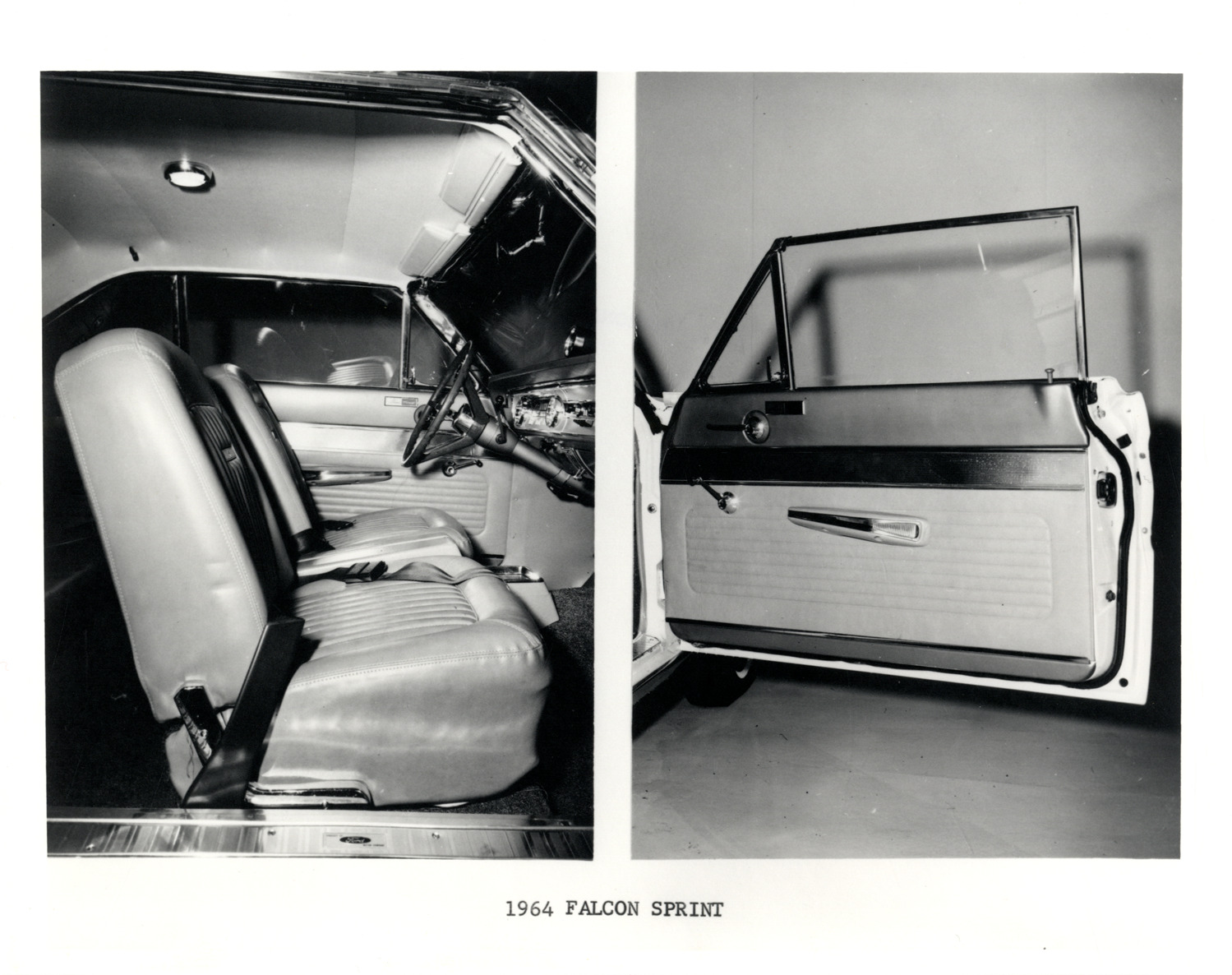 Favorite this☆ 1964 Ford Falcon Sprint automobile interior Description: Two views of the interior of a 1964 Ford Falcon Sprint car, showing front seats and door. Printed on front: "1964 Falcon Sprint." Details Resource ID: na033124 Subject: Ford Falcon automobile Automobiles--Interiors Automobiles--Seats Automobiles--Doors Photographic prints Date Issued: 1964 Format: 1 photographic print ; 8 x 10 in. Member of: National Automotive History Collection Filing Location: Ford, 1964 Rights: Physical rights are retained by DPL. Copyright is retained in accordance with U.S. copyright laws.