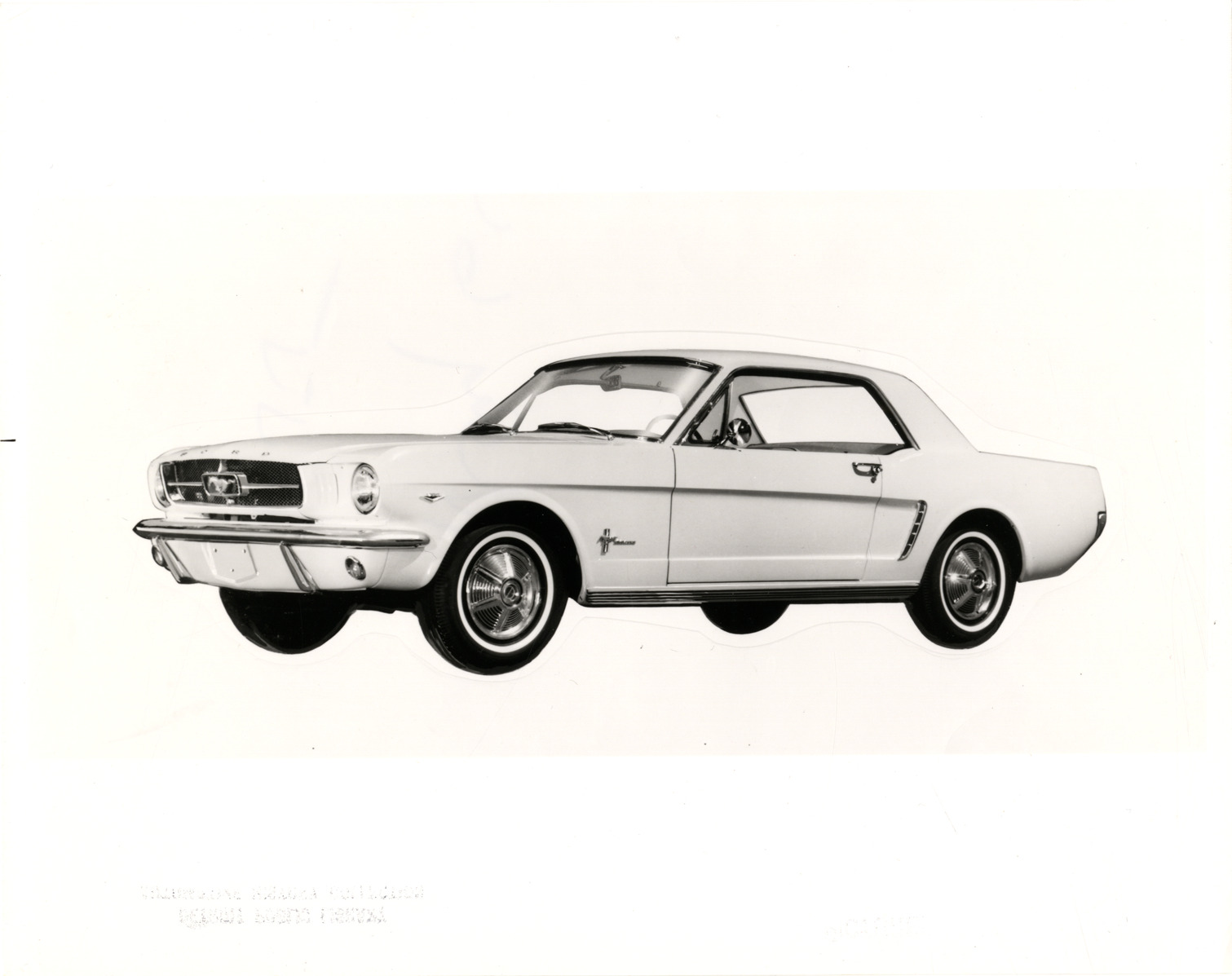 View of a 1964 Ford Mustang coupe. Handwritten on back: "Ford, 1964. (Mustang)."