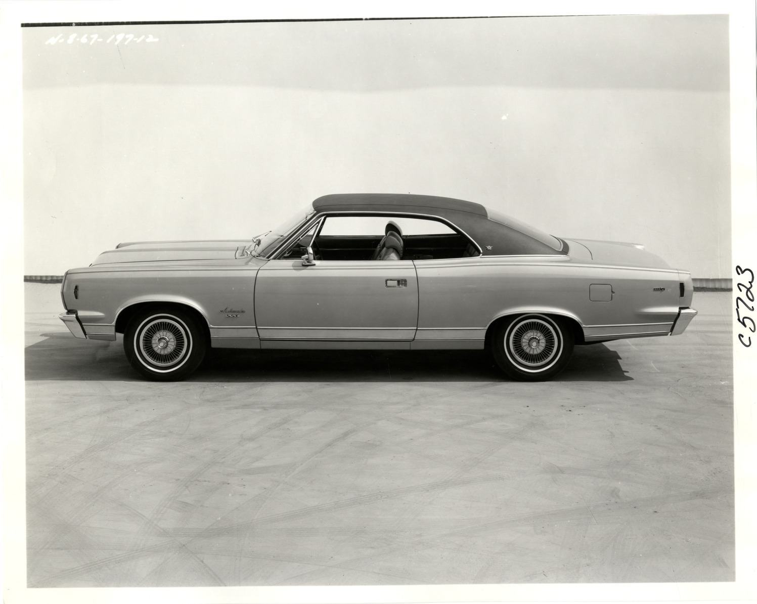 View of a 1968 AMC Ambassador SST coupe. Handwritten on back: "Ambassador SST, 2 door hardtop."