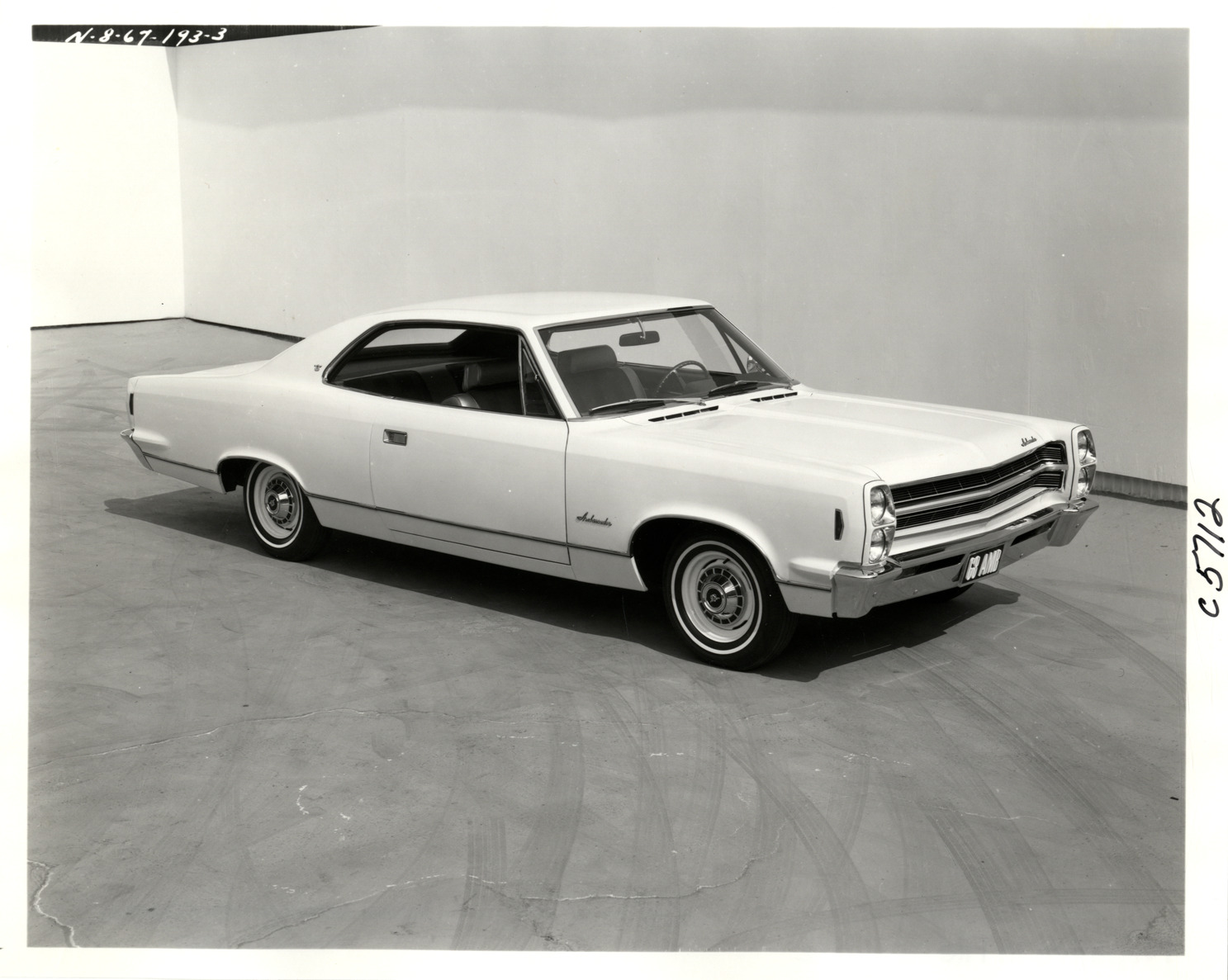 Favorite this☆ 1968 AMC Ambassador automobile Description: View of a 1968 AMC Ambassador coupe. Handwritten on back: "Ambassador, 2 door hardtop." Details Resource ID: na033350 Subject: Ambassador automobile Photographic prints Date Issued: 1968 Format: 1 photographic print ; 8 x 10 in. Member of: National Automotive History Collection Filing Location: AMC, 1968 Negative Number: C5712 Rights: Physical rights are retained by DPL. Copyright is retained in accordance with U.S. copyright laws.