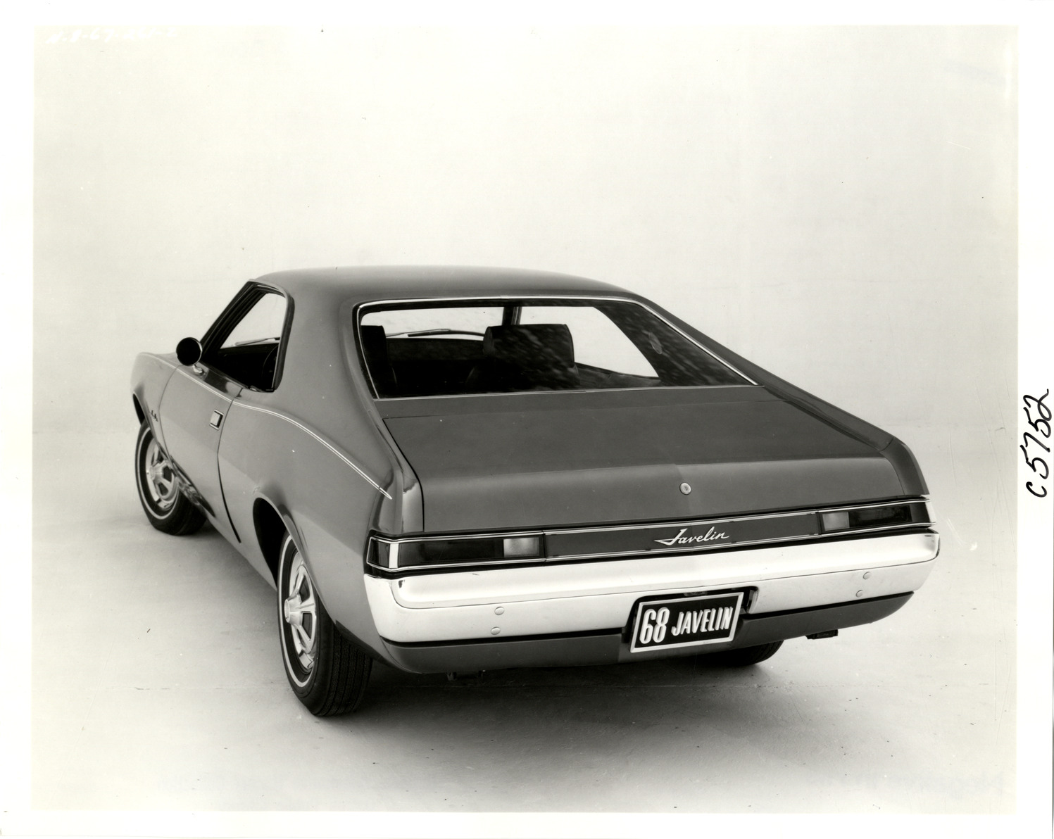 Favorite this☆ 1968 AMC Javelin automobile Description: Rear view of a a 1968 AMC Javelin coupe. Handwritten on back: "Javelin 2 door." Details Resource ID: na033394 Subject: Javelin automobile Photographic prints Date Issued: 1968 Format: 1 photographic print ; 8 x 10 in. Member of: National Automotive History Collection Filing Location: AMC, 1968 Negative Number: C5752 Rights: Physical rights are retained by DPL. Copyright is retained in accordance with U.S. copyright laws.