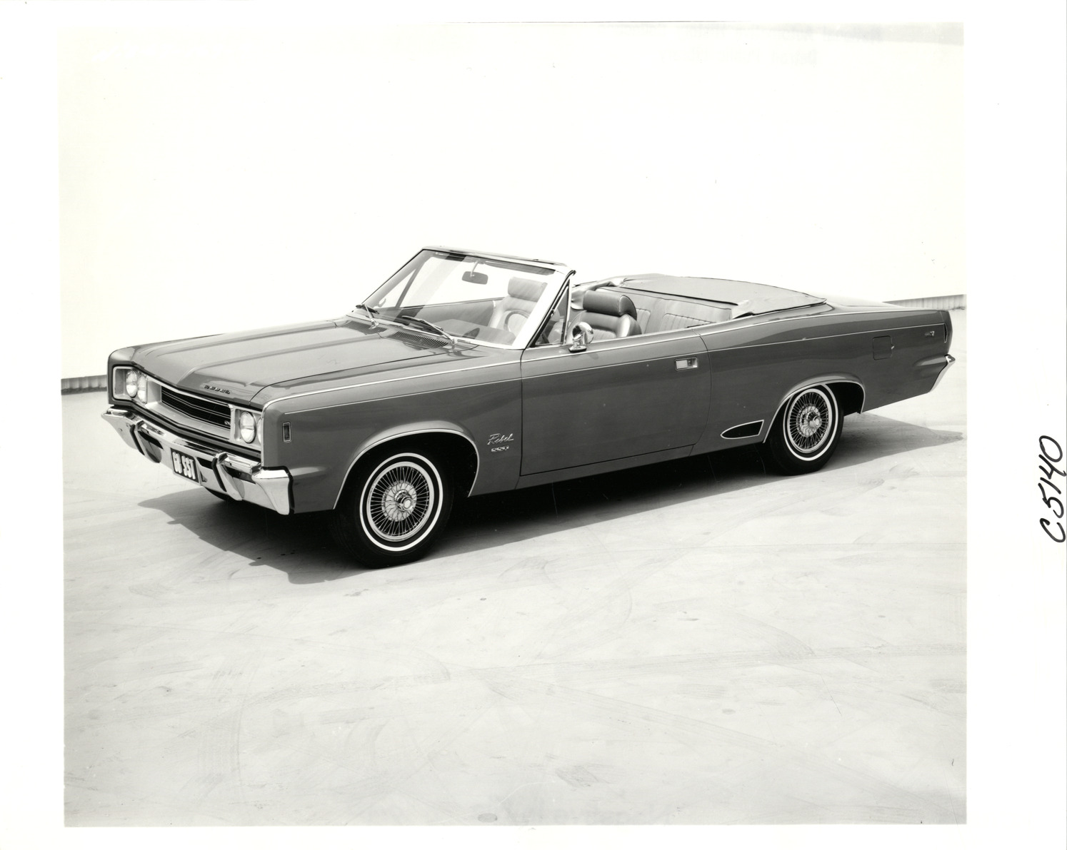 View of a 1968 AMC Rebel SST convertible. Handwritten on back: "Rebel SST convertible."