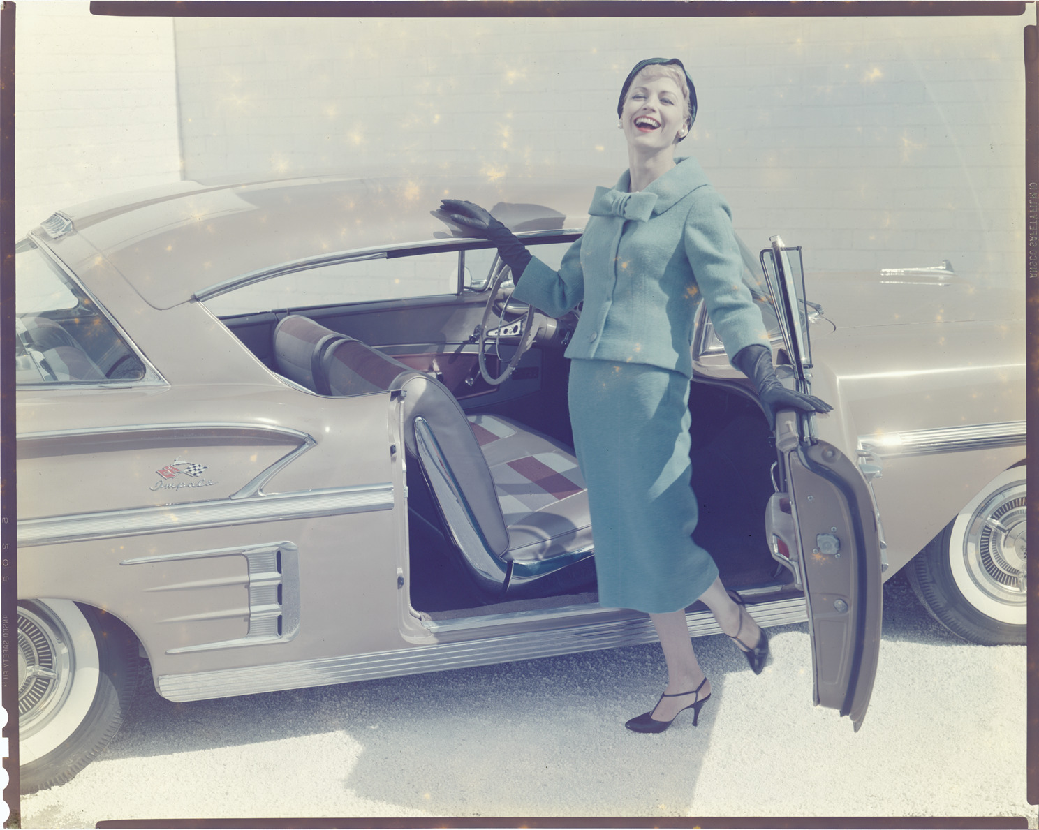 Favorite this☆ 1958 Chevrolet Impala automobile Description: View of a woman posing with a 1958 Chevrolet Impala coupe, showing the interior. Label on sleeve: "General Motors, Chevrolet Impala, 1958." Details Resource ID: na033441 Creator: Boulevard Photographic (Firm) Subject: Impala automobile Automobiles--Interiors Automobiles--Seats Advertising--Automobiles Transparencies Date Issued: 1958 Format: 1 transparency : col. ; 8 x 10 in. Member of: National Automotive History Collection Mickey McGuire and Jim Northmore Boulevard Photographic Collection Filing Location: Chevrolet, 2:3 Rights: Physical rights are retained by DPL. Copyright is retained in accordance with U.S. copyright laws.