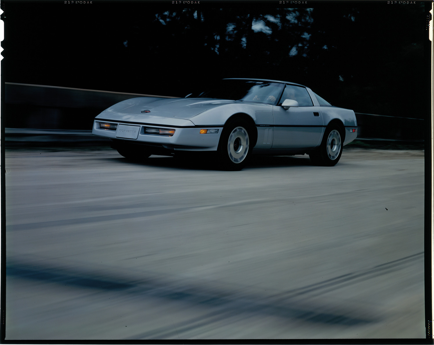 View of a man driving a Chevrolet Corvette coupe. Label on sleeve: "General Motors, Chevrolet Corvette, 1984-85."