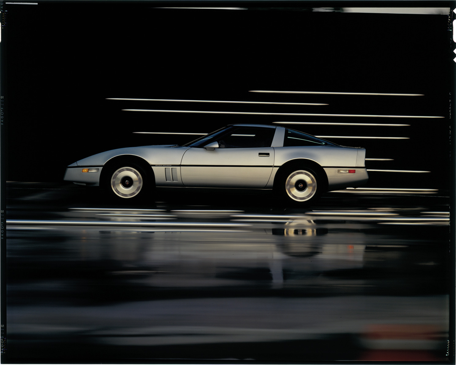 View of a man driving a Chevrolet Corvette coupe. Label on sleeve: "General Motors, Chevrolet Corvette, 1984-85."