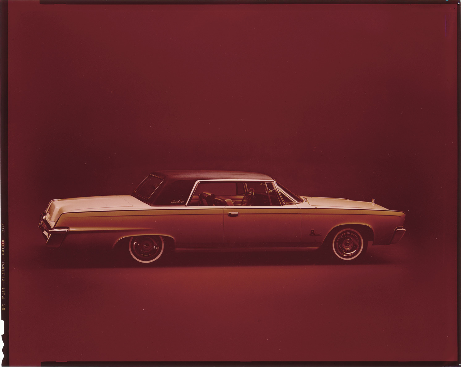 View of a 1964 Chrysler Imperial Crown coupe. Label on sleeve: "Chrysler Corporation, Chrysler Imperial, 1964."