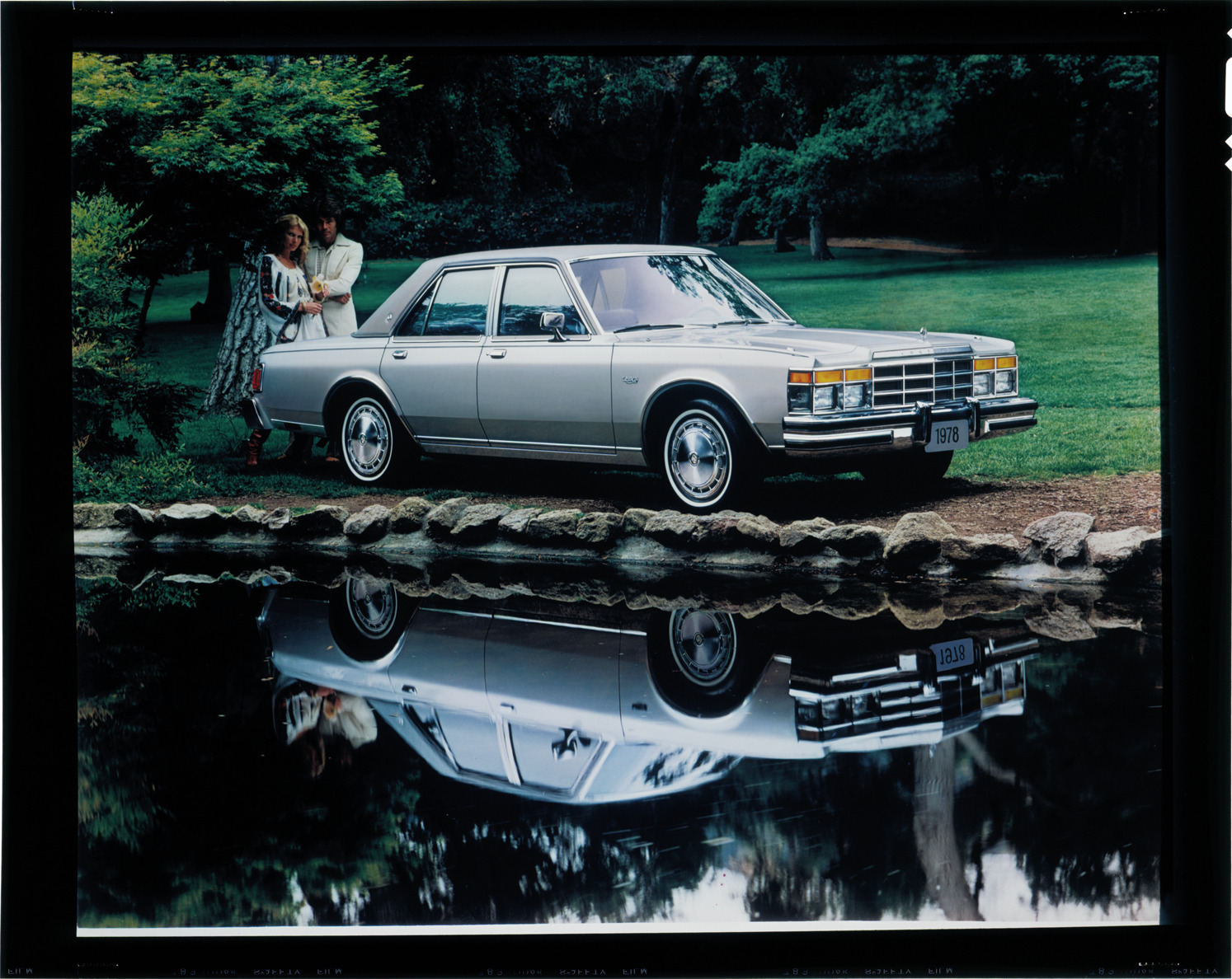 Favorite this☆ 1978 Chrysler LeBaron automobile Description: View of a man and woman posing with a 1978 Chrysler LeBaron sedan. Car is reflected in pond in foreground. Label on sleeve: "Chrysler Corporation, Chrysler LeBaron, 1978." Details Resource ID: na033767 Creator: Boulevard Photographic (Firm) Subject: Chrysler LeBaron automobile Advertising--Automobiles Transparencies Date Issued: 1978 Format: 1 transparency : col. ; 8 x 10 in. Member of: National Automotive History Collection Mickey McGuire and Jim Northmore Boulevard Photographic Collection Filing Location: Chrysler, 3:9 Rights: Physical rights are retained by DPL. Copyright is retained in accordance with U.S. copyright laws.