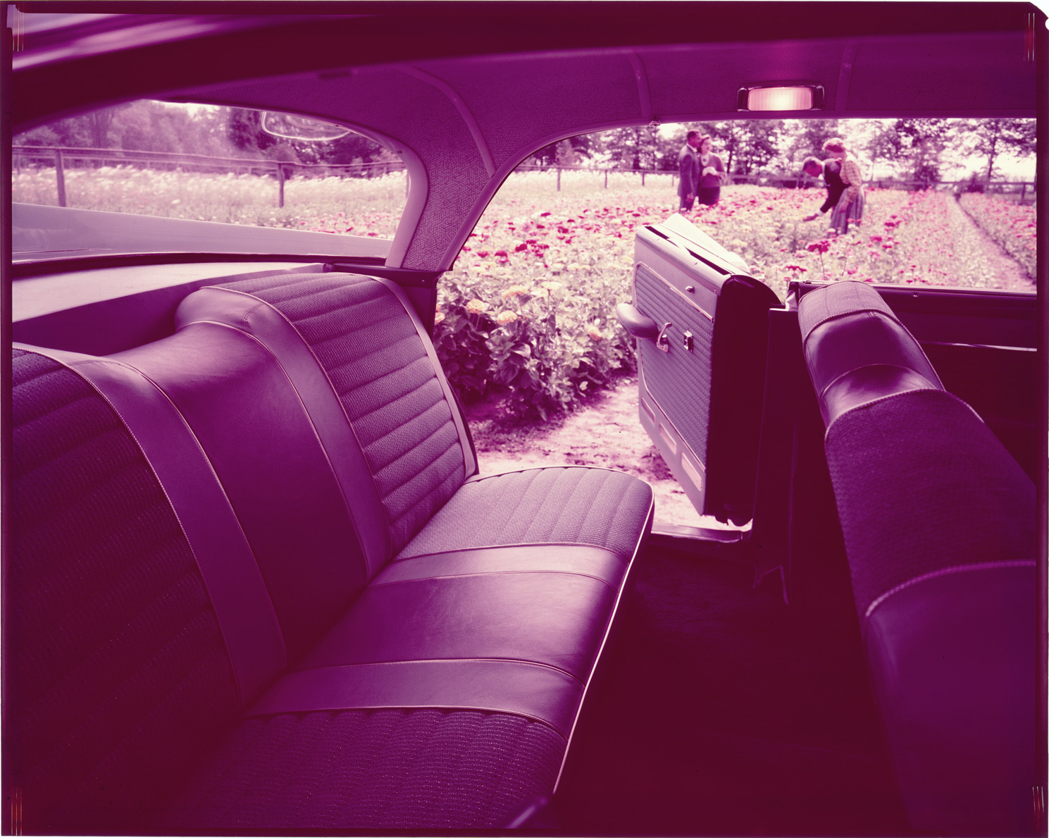 Favorite this☆ 1961 Dodge automobile interior Description: Close-up view of the interior of a 1961 Dodge car, showing rear seats. Men and women standing in flower beds are visible in background through open car door. Label on sleeve: "Chrysler Corporation, Dodge, 1961." Details Resource ID: na033911 Creator: Boulevard Photographic (Firm) Subject: Dodge automobile Automobiles--Interiors Automobiles--Seats Advertising--Automobiles Transparencies Date Issued: 1961 Format: 1 transparency : col. ; 8 x 10 in. Member of: National Automotive History Collection Mickey McGuire and Jim Northmore Boulevard Photographic Collection Filing Location: Dodge, 4:5 Rights: Physical rights are retained by DPL. Copyright is retained in accordance with U.S. copyright laws.