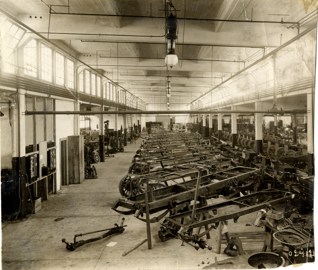 Favorite this☆ Interior, Alden Sampson factory Description: View of car chassis lined up inside Alden Sampson Manufacturing Company factory. Handwritten on back: "Factories--Alden Sampson Mfg. Co., Detroit, ca. 1911." Details Resource ID: na034002 Subject: Automobile factories--Michigan--Detroit Alden Sampson Manufacturing Company Automobiles--Chassis Photographic prints Date Issued: 1911 (year approximate) Format: 1 photographic print ; 7.5 x 8.5 in. Member of: National Automotive History Collection Lazarnick Collection Filing Location: General photograph files, Factories--Alden Sampson Mfg. Co. Rights: Physical rights are retained by DPL. Copyright is retained in accordance with U.S. copyright laws.