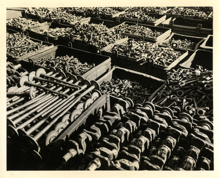 Favorite this☆ Trimmed forgings, Buick Motor Company factory Description: View of containers of trimmed metal forgings from the Buick Motor Company factory. Label on front: "Buick. Trimmed forgings." Handwritten on back: "Factories--Buick." Details Resource ID: na034037 Subject: Automobiles--Parts Automobile factories Buick Motor Company Photographic prints Date Issued: 1937 Format: 1 photographic print ; 4 x 5 in. Member of: National Automotive History Collection Filing Location: Factories--Buick Rights: Physical rights are retained by DPL. Copyright is retained in accordance with U.S. copyright laws.