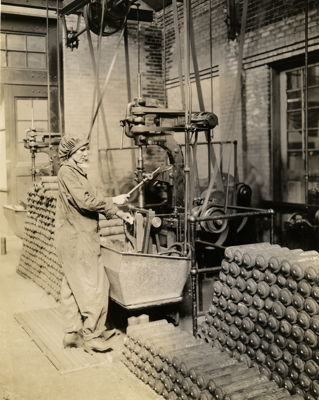 Favorite this☆ Woman worker operating machinery at Chalmers Motor Company factory Description: View of a woman operating a machine at the Chalmers Motor Company factory. Cylinders are stacked on floor. Details Resource ID: na034084 Subject: Women automobile industry workers--Michigan--Detroit Chalmers Motor Company Machinery--Michigan--Detroit Automobile factories--Michigan--Detroit Photographic prints Date Issued: Unknown year Format: 1 photographic print mounted on fabric ; 9.5 x 7.5 in. Member of: National Automotive History Collection Filing Location: Factories--Chalmers Rights: Physical rights are retained by DPL. Copyright is retained in accordance with U.S. copyright laws.