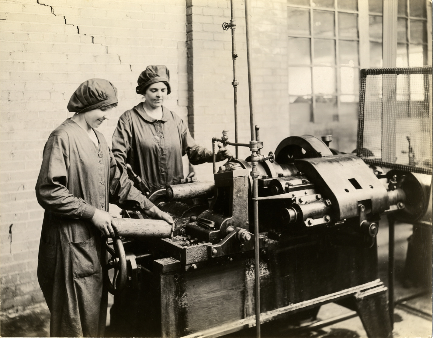 Favorite this☆ Women workers operating machinery at Chalmers Motor Company factory Description: View of two women operating a machine at the Chalmers Motor Company factory. Details Resource ID: na034086 Subject: Women automobile industry workers--Michigan--Detroit Machinery--Michigan--Detroit Chalmers Motor Company Automobile factories--Michigan--Detroit Photographic prints Date Issued: Unknown year Format: 1 photographic print mounted on fabric ; 7.5 x 9.5 in. Member of: National Automotive History Collection Filing Location: Factories--Chalmers Rights: Physical rights are retained by DPL. Copyright is retained in accordance with U.S. copyright laws.
