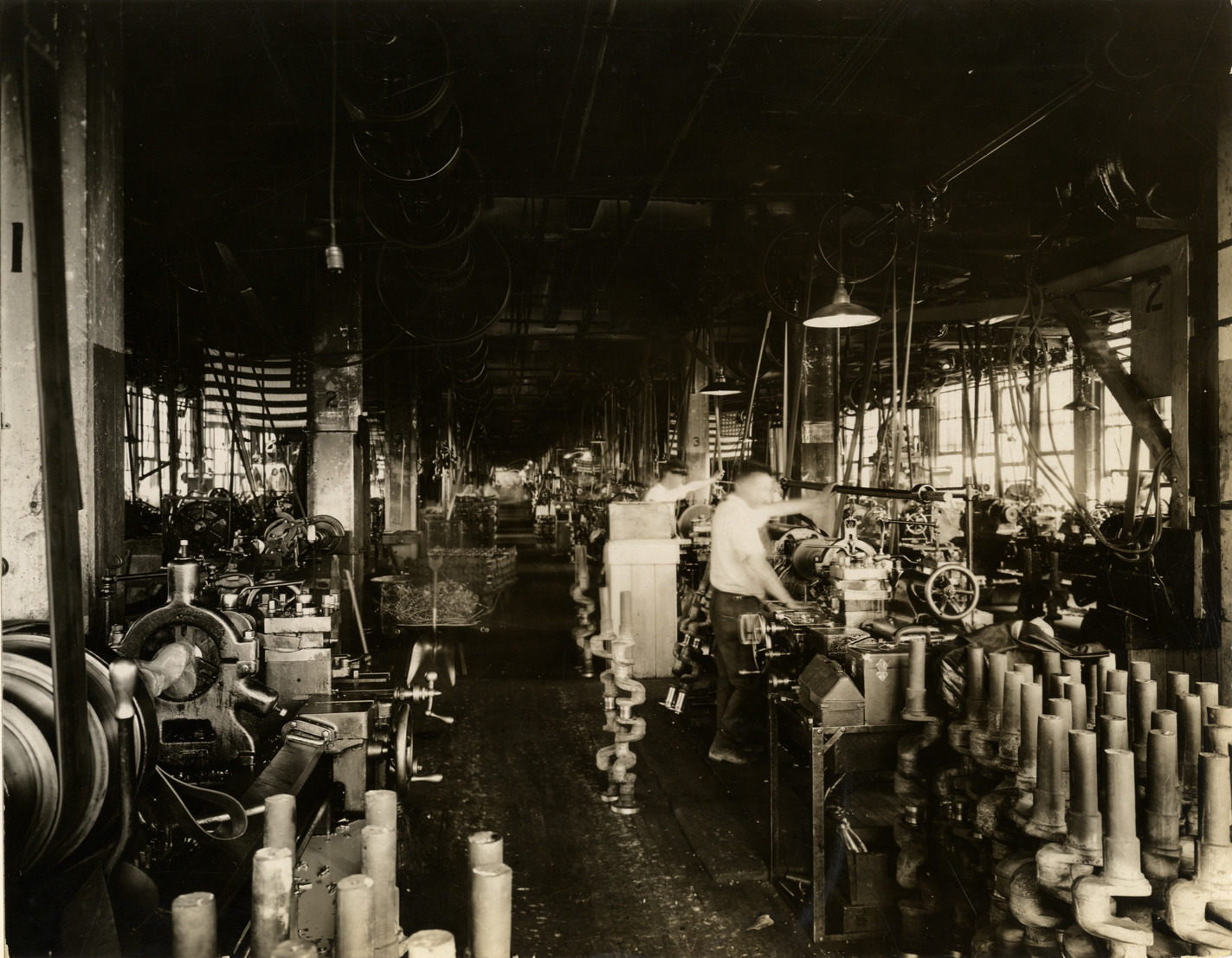 Workers manufacturing crankshafts, Chalmers Motor Company factory