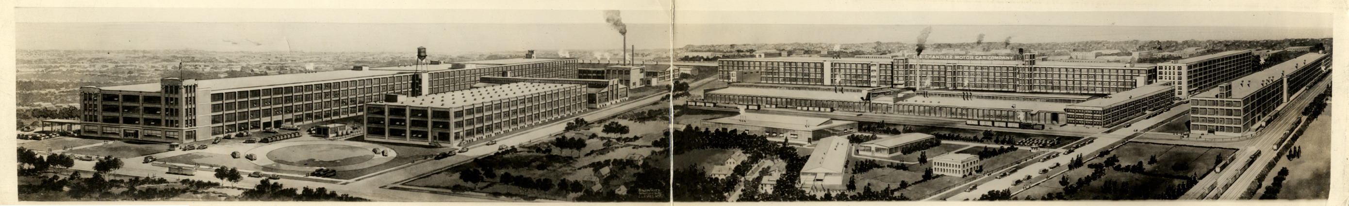 Favorite this☆ Chandler Motor Company factory Description: Artist's depiction of the Chandler Motor Company factory in Cleveland, Ohio. Handwritten on back: "Factories--Chandler, 1926." Details Resource ID: na034127 Subject: Factories--Ohio--Cleveland Chandler Motor Company Photographic prints Date Issued: 1926 Format: 1 panoramic print ; 3 x 18.5 in. Member of: National Automotive History Collection Filing Location: Factories--Chandler Rights: Physical rights are retained by DPL. Copyright is retained in accordance with U.S. copyright laws.