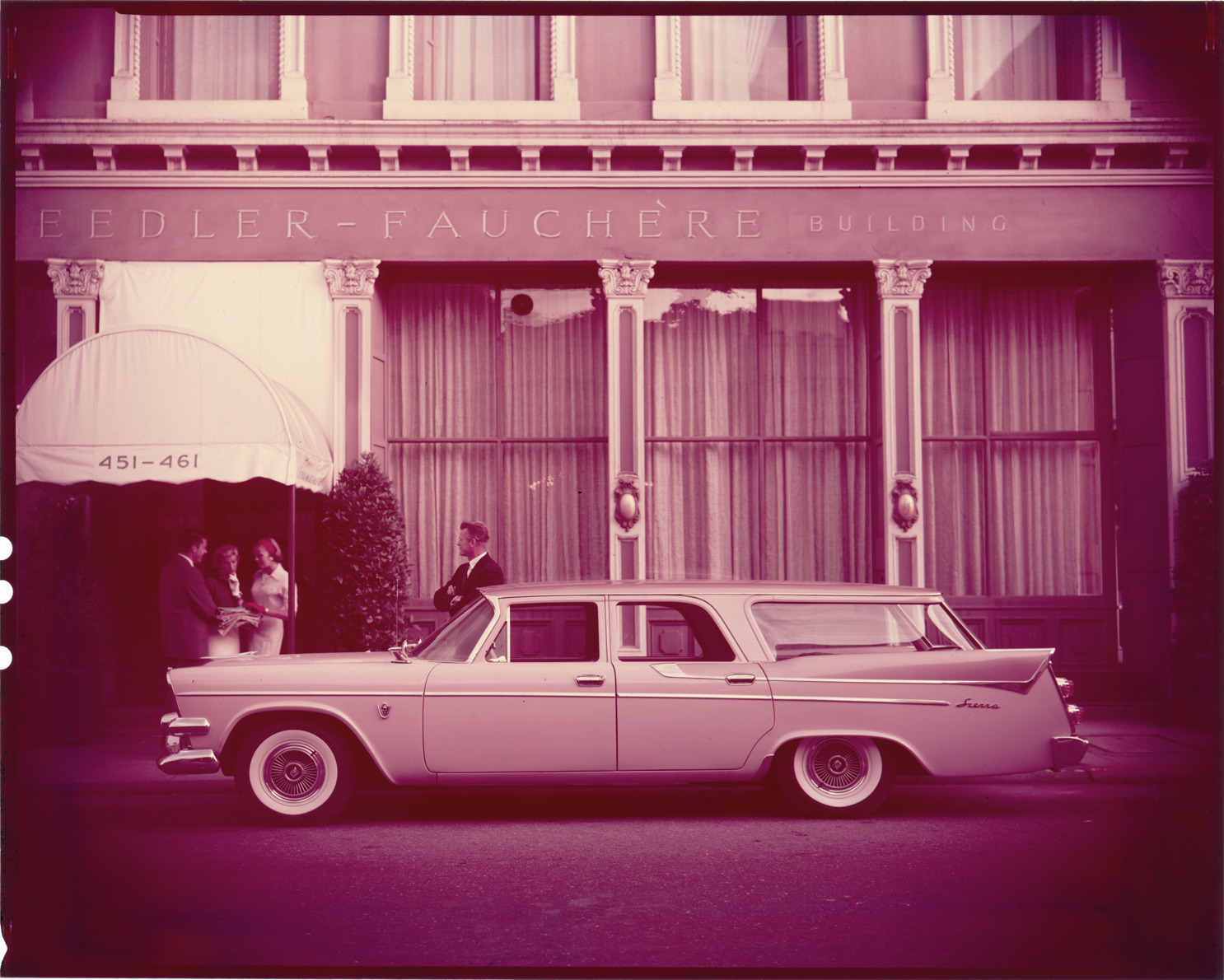 Favorite this☆ 1958 Dodge Sierra station wagon Description: View of a 1958 Dodge Sierra station wagon. Men and women stand in front of Kneedler-Fauchere Building in background. Label on sleeve: "Chrysler Corporation, Dodge, Sierra wagon, 1958." Details Resource ID: na034167 Creator: Boulevard Photographic (Firm) Subject: Dodge automobile Station wagons Advertising--Automobiles Transparencies Date Issued: 1958 Format: 1 transparency : col. ; 8 x 10 in. Member of: National Automotive History Collection Mickey McGuire and Jim Northmore Boulevard Photographic Collection Filing Location: Dodge, 4:3 Rights: Physical rights are retained by DPL. Copyright is retained in accordance with U.S. copyright laws.