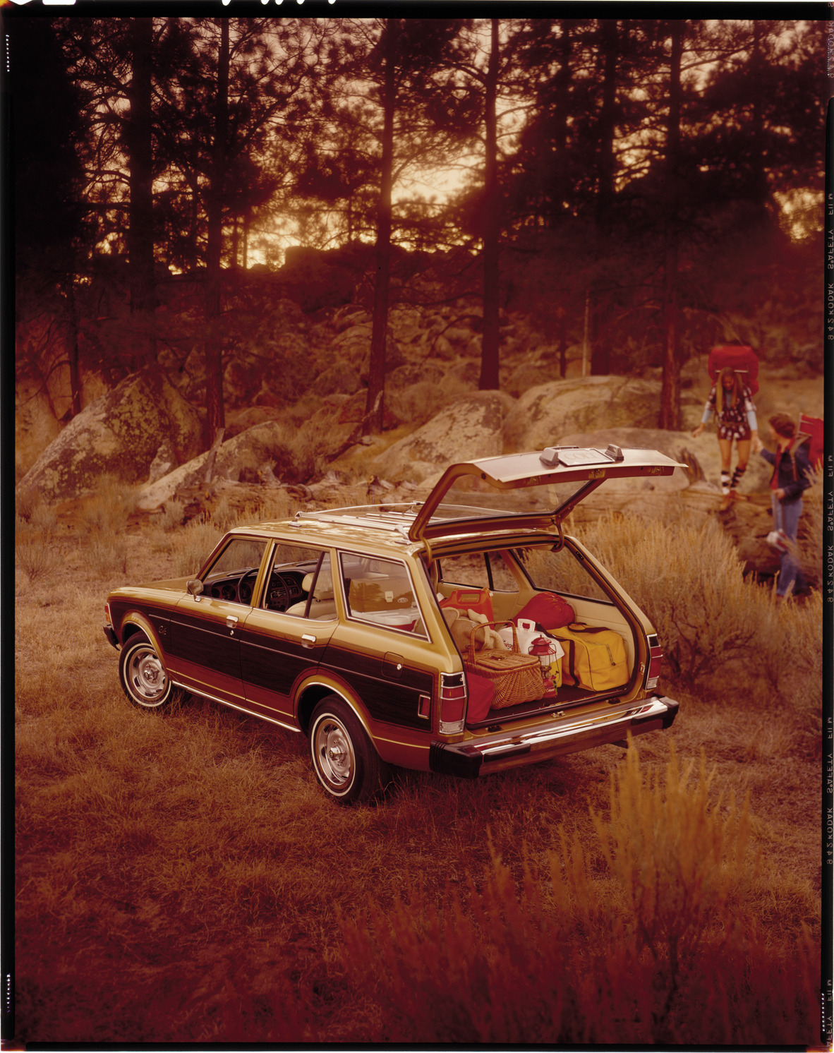 Favorite this☆ 1976 Dodge Colt station wagon Description: View of a 1976 Dodge Colt station wagon; open tailgate displays camping equipment. Hikers in background. Label on sleeve: "Chrysler Corporation, Dodge Colt (import), 1976." Details Resource ID: na034276 Creator: Boulevard Photographic (Firm) Subject: Dodge Colt automobile Station wagons Advertising--Automobiles Transparencies Date Issued: 1976 Format: 1 transparency : col. ; 10 x 8 in. Member of: National Automotive History Collection Mickey McGuire and Jim Northmore Boulevard Photographic Collection Filing Location: Dodge, 4:14 Rights: Physical rights are retained by DPL. Copyright is retained in accordance with U.S. copyright laws.