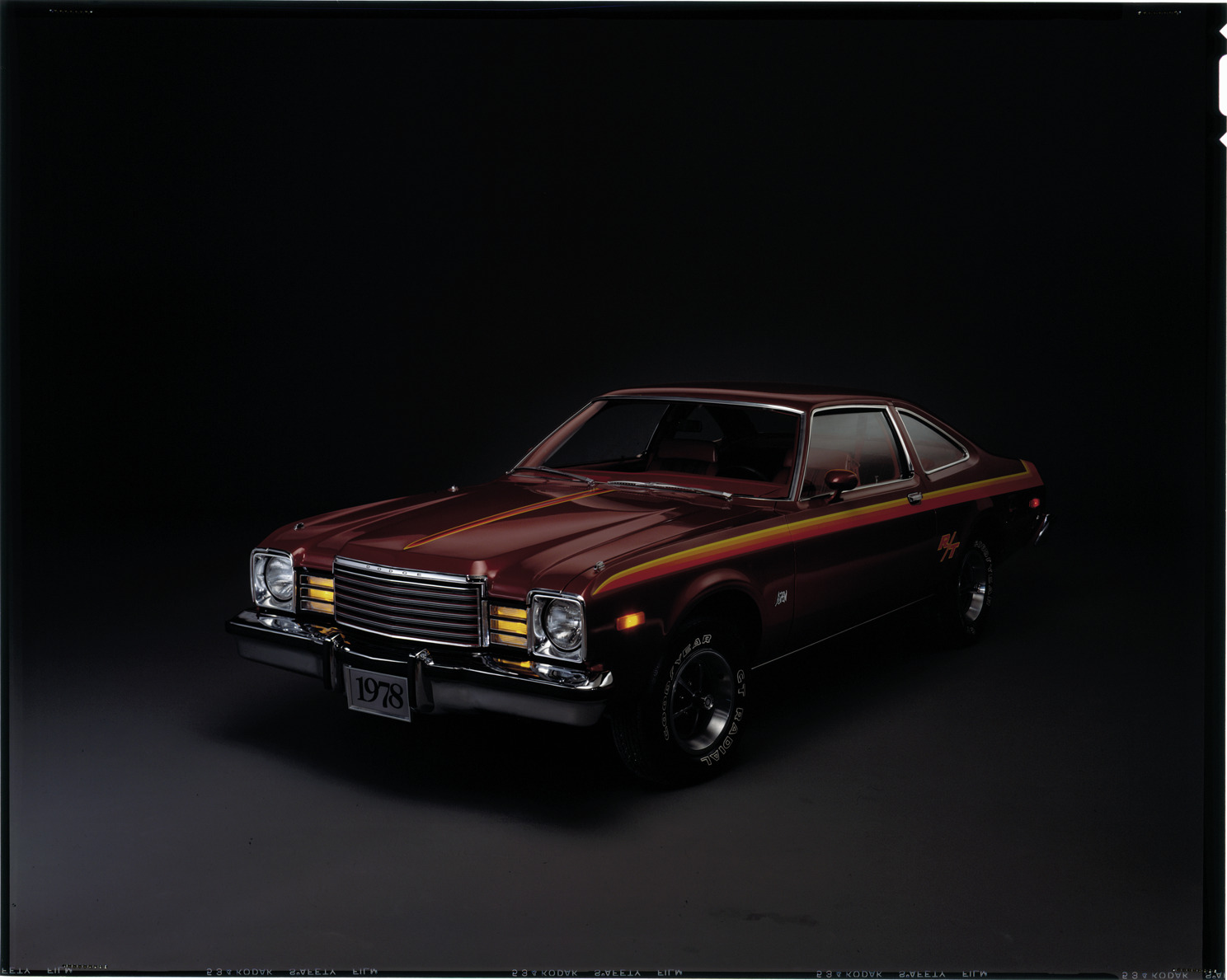 View of a 1978 Dodge Aspen coupe. Label on sleeve: "Chrysler Corporation, Dodge R/T Aspen, 1978."