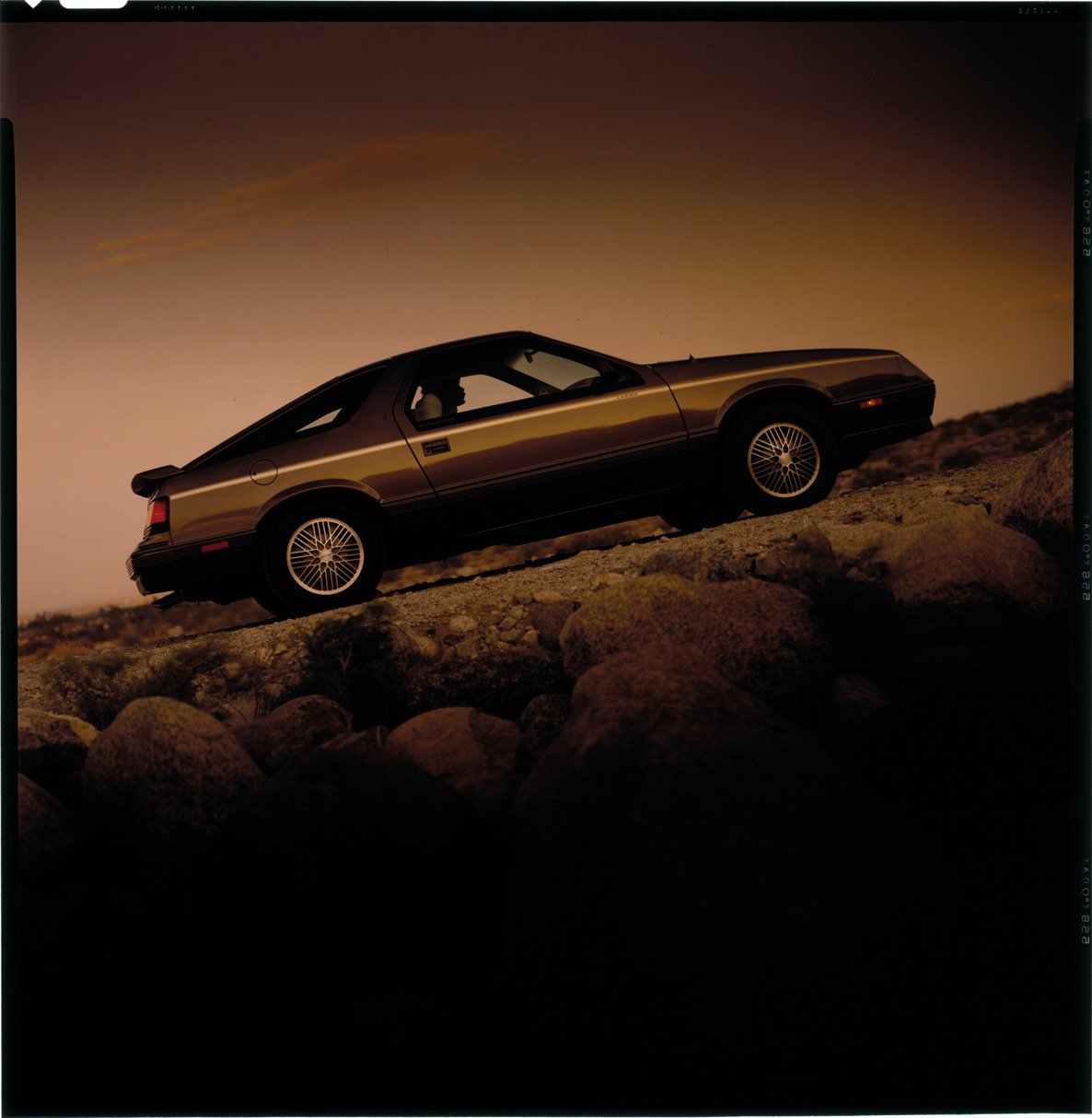 Favorite this☆ 1984 Chrysler Laser automobile Description: View of a man driving a 1984 Chrysler Laser coupe. Label on sleeve: "Chrysler Corporation, Chrysler Laser, 1984." Details Resource ID: na034330 Creator: Boulevard Photographic (Firm) Subject: Chrysler automobile Advertising--Automobiles Transparencies Date Issued: 1984 Format: 1 transparency : col. ; 8 x 8 in. Member of: National Automotive History Collection Mickey McGuire and Jim Northmore Boulevard Photographic Collection Filing Location: Chrysler, 3:12 Rights: Physical rights are retained by DPL. Copyright is retained in accordance with U.S. copyright laws.