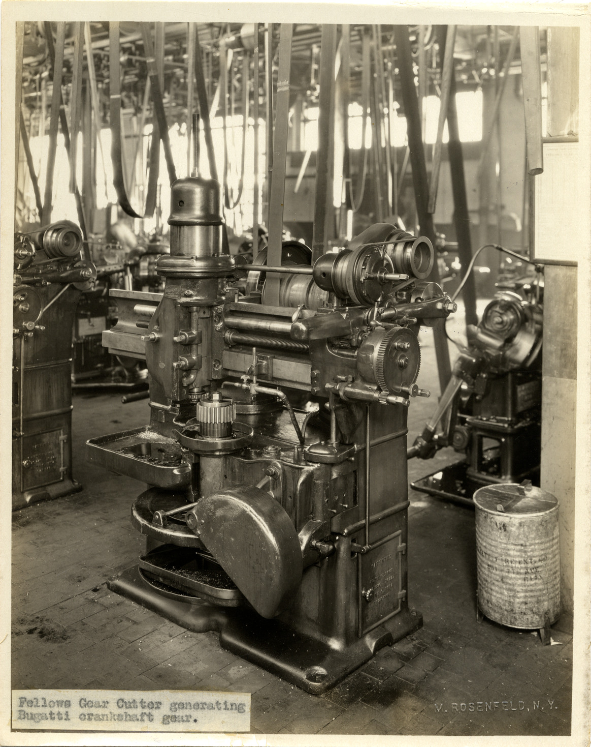Favorite this☆ Fellows gear cutter Description: View of a Fellows gear cutting machine at the Duesenberg Motor Company factory. Label on front: "Fellows gear cutter generating Bugatti crankshaft gear." Embossed on front: "M. Rosenfeld, N.Y." Handwritten on back: "Factories--Duesenberg." Details Resource ID: na034433 Creator: Rosenfeld, Morris, 1884-1968 Subject: Gear-cutting machines Automobile factories Duesenberg Motor Company Photographers--New York (State)--New York Photographic prints Date Issued: Unknown year Format: 1 photographic print mounted on fabric ; 9.75 x 7.75 in. Member of: National Automotive History Collection Filing Location: Factories--Duesenberg Rights: Physical rights are retained by DPL. Copyright is retained in accordance with U.S. copyright laws.