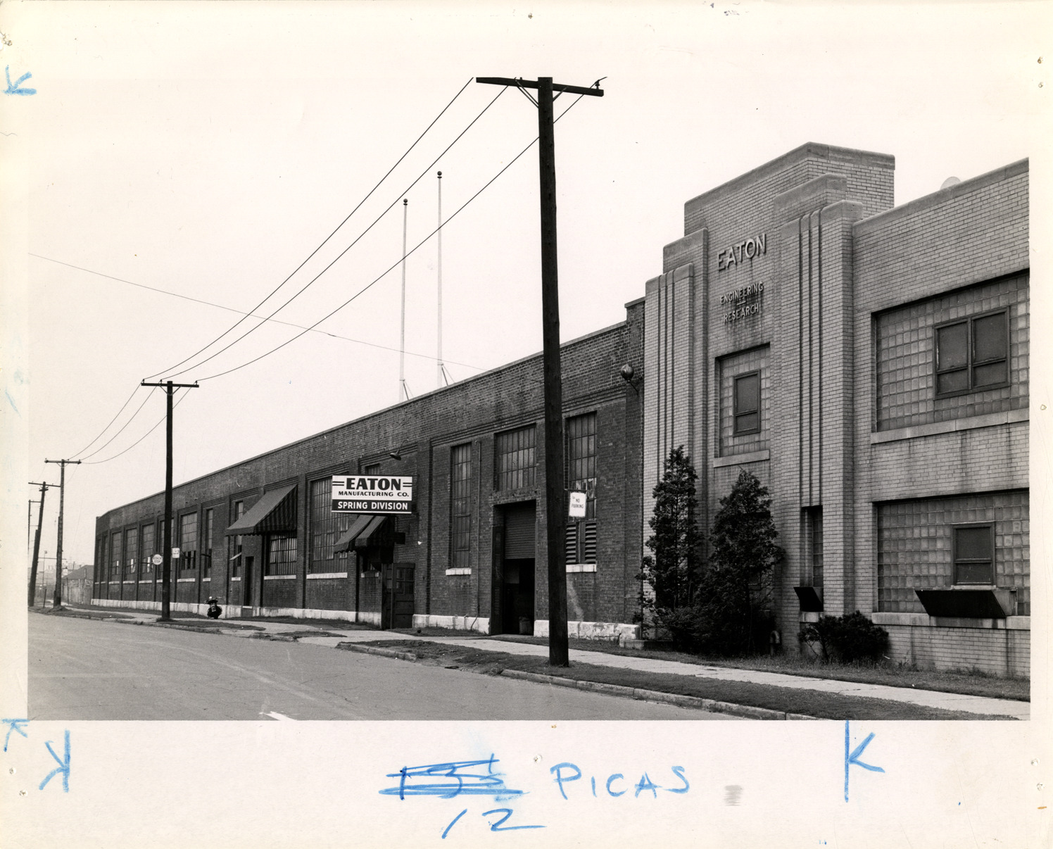 Favorite this☆ Eaton Manufacturing Company factory Description: View of the Eaton Manufacturing Company factory. Signs on building read: "Eaton Manufacturing Co., Spring Division" and "Eaton, engineering, research." Details Resource ID: na034466 Subject: Factories Eaton Manufacturing Company Photographic prints Format: 1 photographic print ; 8 x 10 in. Member of: National Automotive History Collection Filing Location: Factories--Eaton Manufacturing Co. Rights: Physical rights are retained by DPL. Copyright is retained in accordance with U.S. copyright laws.