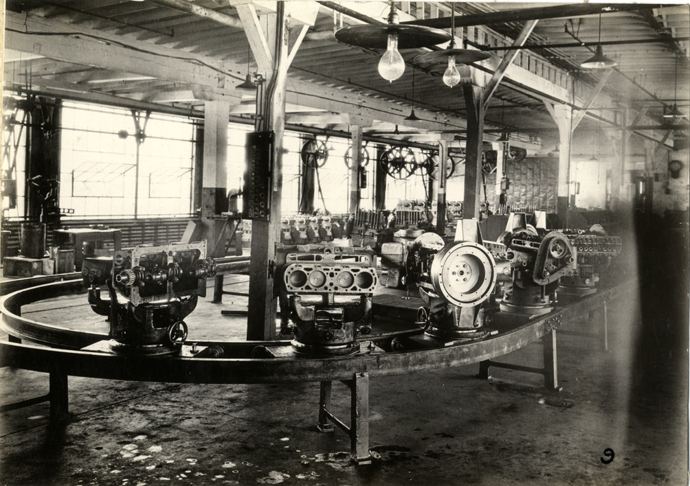 Favorite this☆ Progressive motor assembly, Gray Motor Corporation factory Description: View of car engines on conveyor at the Gray Motor Corporation factory. Typed on back: "Another view of progressive motor assembly." Details Resource ID: na034521 Subject: Automobiles--Motors Automobile factories--Michigan--Detroit Gray Motor Corporation Conveying machinery--Michigan--Detroit Photographic prints Format: 1 photographic print mounted on fabric ; 4.75 x 6.75 in. Member of: National Automotive History Collection Filing Location: Factories--Gray Motor Car Co. Rights: Physical rights are retained by DPL. Copyright is retained in accordance with U.S. copyright laws.
