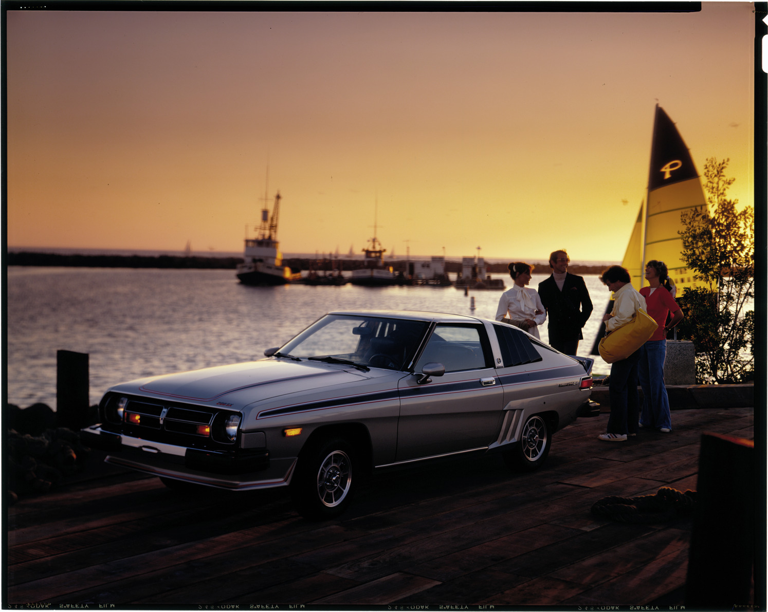 Favorite this☆ Datsun 200SX automobile Description: View of men and women posing with a Datsun 200SX coupe. Sailboat and freighter in background. Label on sleeve: "Datsun/Nissan, Datsun 200SX, 1975-79." Details Resource ID: na034709 Creator: Boulevard Photographic (Firm) Subject: Datsun automobile Advertising--Automobiles Transparencies Date Issued: 1975 to 1979 Format: 1 transparency : col. ; 8 x 10 in. Member of: National Automotive History Collection Mickey McGuire and Jim Northmore Boulevard Photographic Collection Filing Location: Datsun/Nissan, 3:15 Rights: Physical rights are retained by DPL. Copyright is retained in accordance with U.S. copyright laws.