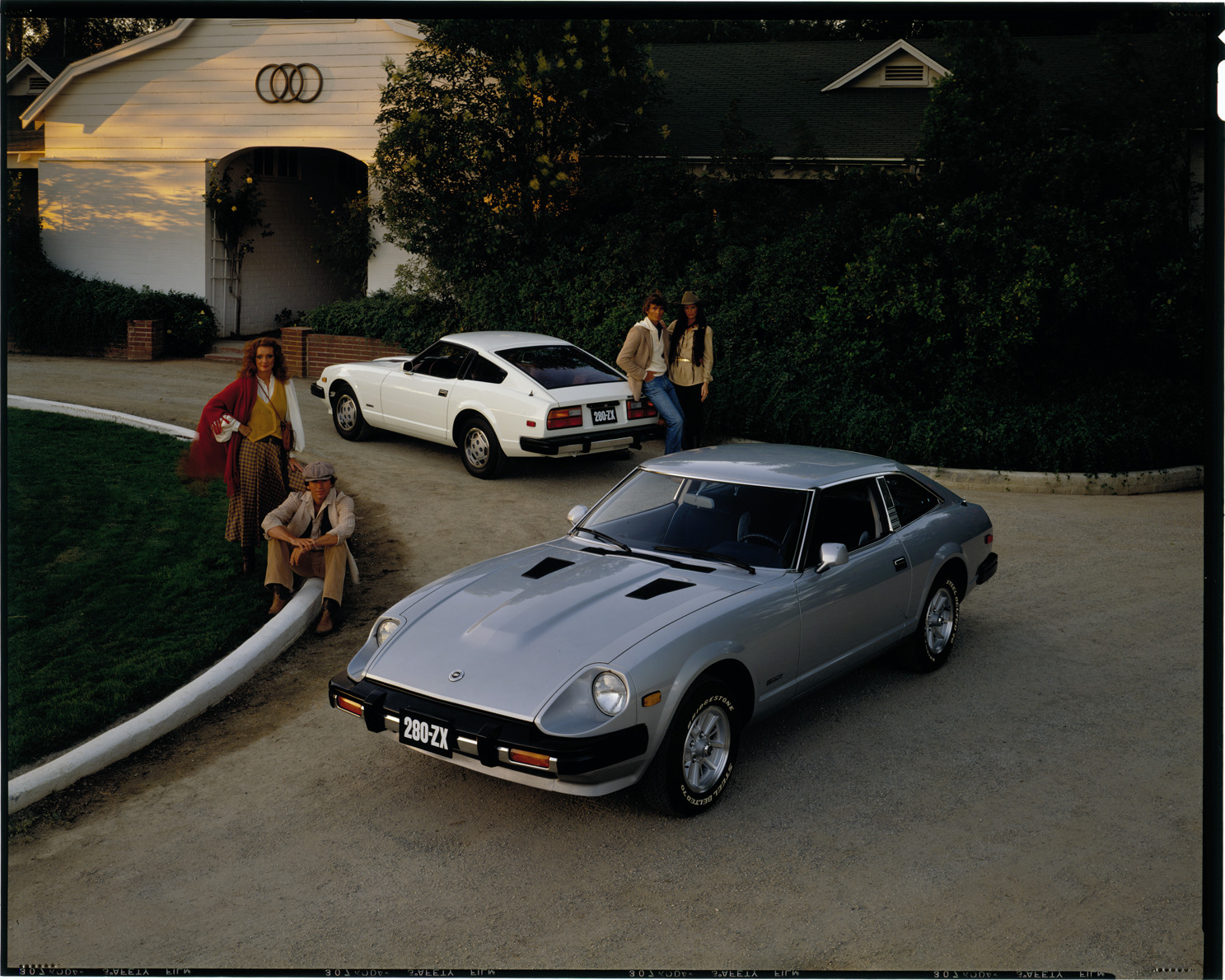 Favorite this☆ Datsun 280ZX automobiles Description: View of men and women posing with two Datsun 280ZX coupes. Label on sleeve: "Datsun/Nissan, Datsun 280ZX, 1980s." Details Resource ID: na034739 Creator: Boulevard Photographic (Firm) Subject: Datsun automobile Advertising--Automobiles Transparencies Date Issued: Unknown year in the decade of the 1980s Format: 1 transparency : col. ; 8 x 10 in. Member of: National Automotive History Collection Mickey McGuire and Jim Northmore Boulevard Photographic Collection Filing Location: Datsun/Nissan, 3:16 Rights: Physical rights are retained by DPL. Copyright is retained in accordance with U.S. copyright laws.