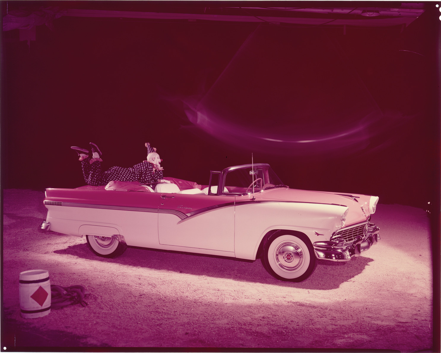 Favorite this☆ 1956 Ford Sunliner automobile Description: View of a clown posing on a 1956 Ford Sunliner convertible. Label on sleeve: "Ford Motor Co., Ford convertible, 1956." Details Resource ID: na034747 Creator: Boulevard Photographic (Firm) Subject: Ford automobile Automobiles, Convertible Clowns Advertising--Automobiles Transparencies Date Issued: 1956 Format: 1 transparency : col. ; 8 x 10 in. Member of: National Automotive History Collection Mickey McGuire and Jim Northmore Boulevard Photographic Collection Filing Location: Ford, 5:3 Rights: Physical rights are retained by DPL. Copyright is retained in accordance with U.S. copyright laws.
