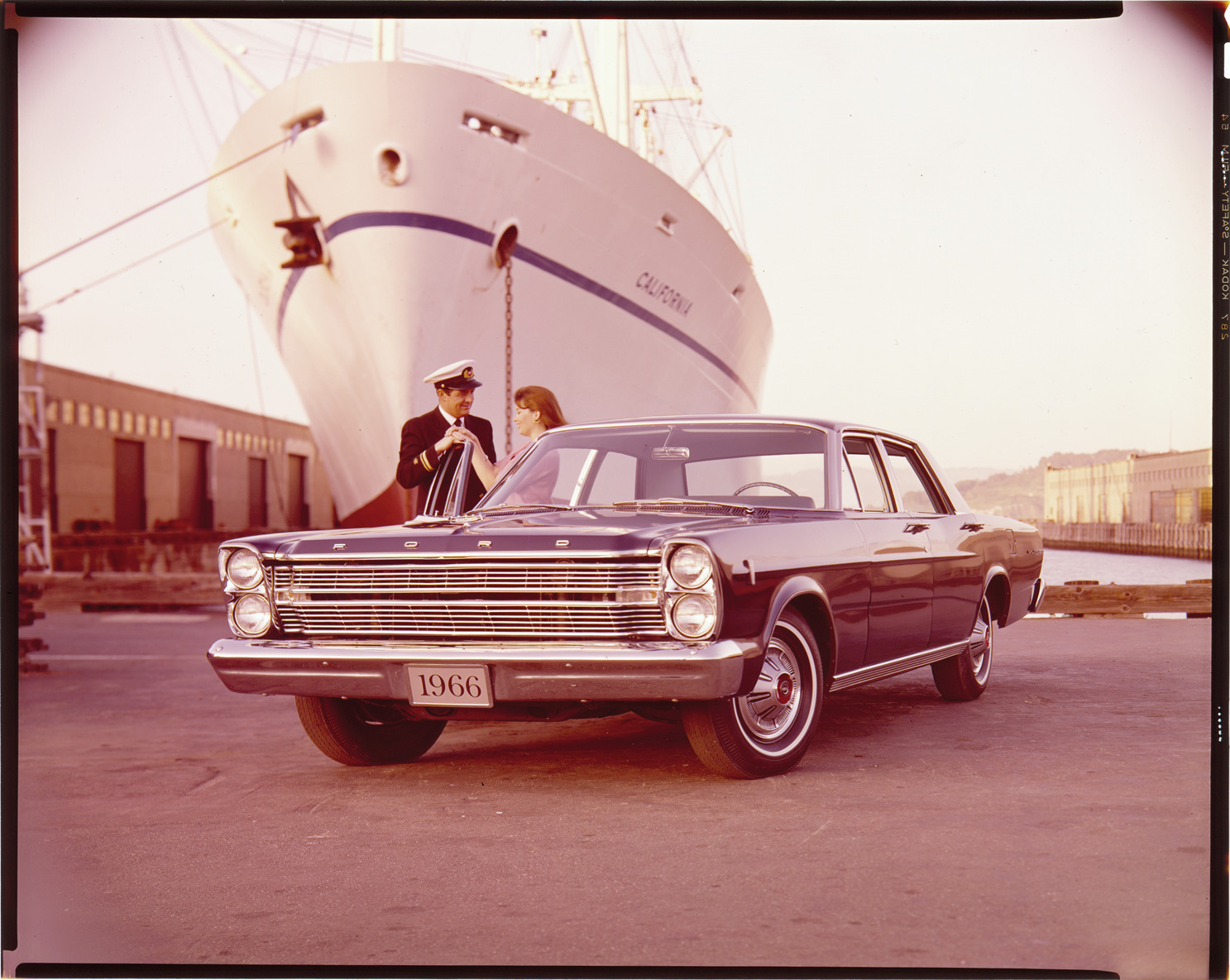 Favorite this☆ 1966 Ford automobile Description: View of a ship captain and a woman posing with a 1966 Ford sedan. Ship in background. Label on sleeve: "Ford Motor Co., Ford, 1966." Details Resource ID: na034972 Creator: Boulevard Photographic (Firm) Subject: Ford automobile Ships Advertising--Automobiles Transparencies Date Issued: 1966 Format: 1 transparency : col. ; 8 x 10 in. Member of: National Automotive History Collection Mickey McGuire and Jim Northmore Boulevard Photographic Collection Filing Location: Ford, 5:12 Rights: Physical rights are retained by DPL. Copyright is retained in accordance with U.S. copyright laws.