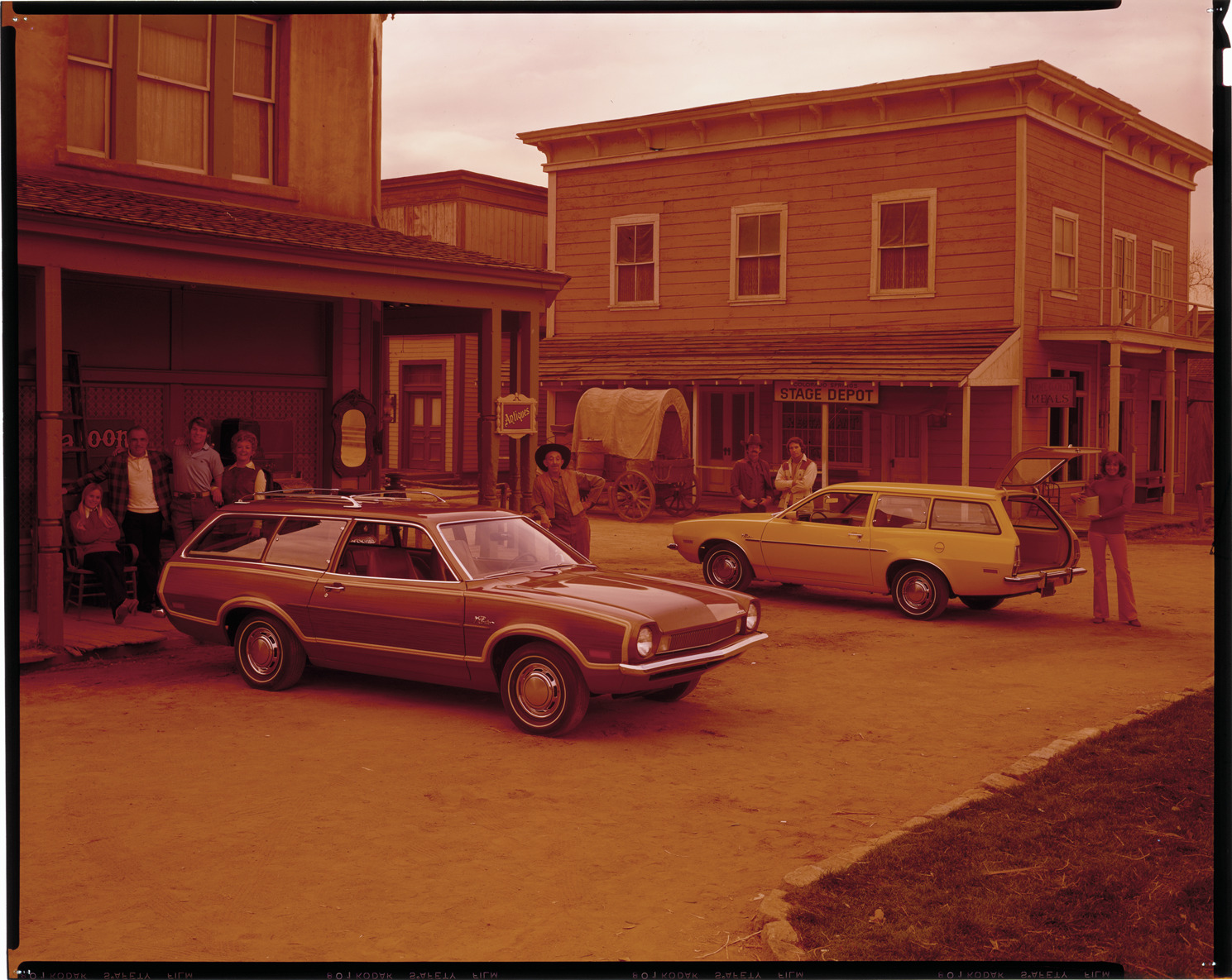 Favorite this☆ 1972 Ford Pinto station wagons Description: View of two 1972 Ford Pinto station wagons. Old West stage depot, saloon and covered wagon on set in background. Label on sleeve: "Ford Motor Co., Ford Pinto wagon, 1972." Details Resource ID: na035075 Creator: Boulevard Photographic (Firm) Subject: Pinto automobile Station wagons Advertising--Automobiles Transparencies Date Issued: 1972 Format: 1 transparency : col. ; 8 x 10 in. Member of: National Automotive History Collection Mickey McGuire and Jim Northmore Boulevard Photographic Collection Filing Location: Ford, 6:7 Rights: Physical rights are retained by DPL. Copyright is retained in accordance with U.S. copyright laws.