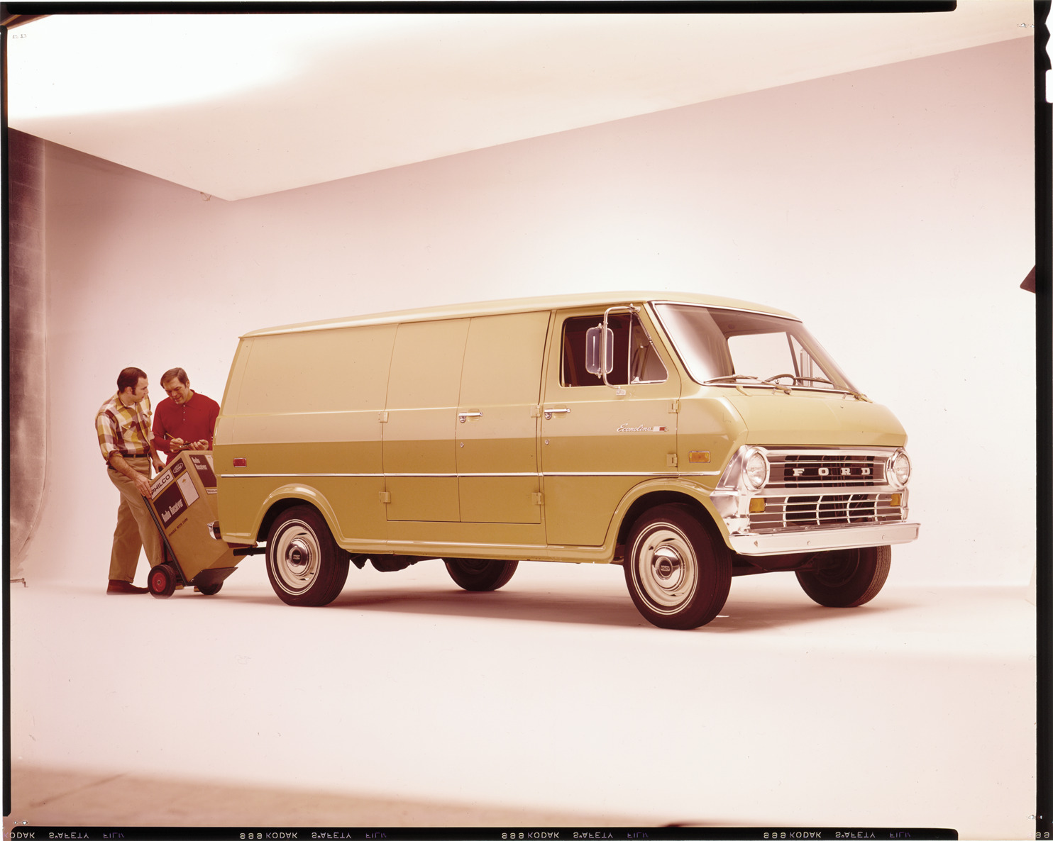 Favorite this☆ 1971 Ford Econoline van Description: View of two men loading a box into a 1971 Ford Econoline van. Label on sleeve: "Ford Motor Co., Ford Econoline cargo van, 1971." Details Resource ID: na035176 Creator: Boulevard Photographic (Firm) Subject: Ford Econoline van Advertising--Automobiles Transparencies Date Issued: 1971 Format: 1 transparency : col. ; 8 x 10 in. Member of: National Automotive History Collection Mickey McGuire and Jim Northmore Boulevard Photographic Collection Filing Location: Ford, 6:11 Rights: Physical rights are retained by DPL. Copyright is retained in accordance with U.S. copyright laws.