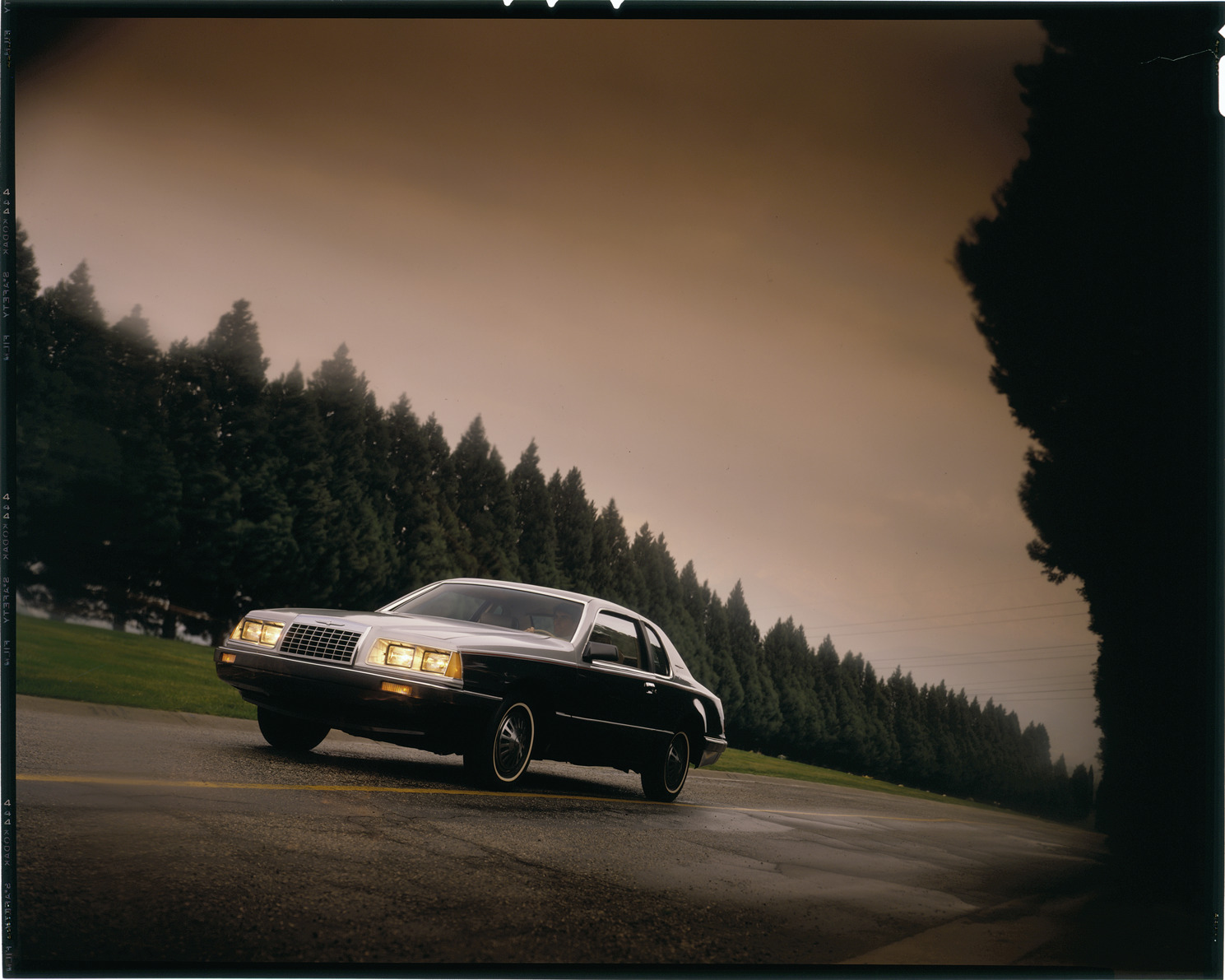 View of a man driving a Ford Thunderbird coupe. Label on sleeve: "Ford Motor Co., Ford Thunderbird, 1983-85."