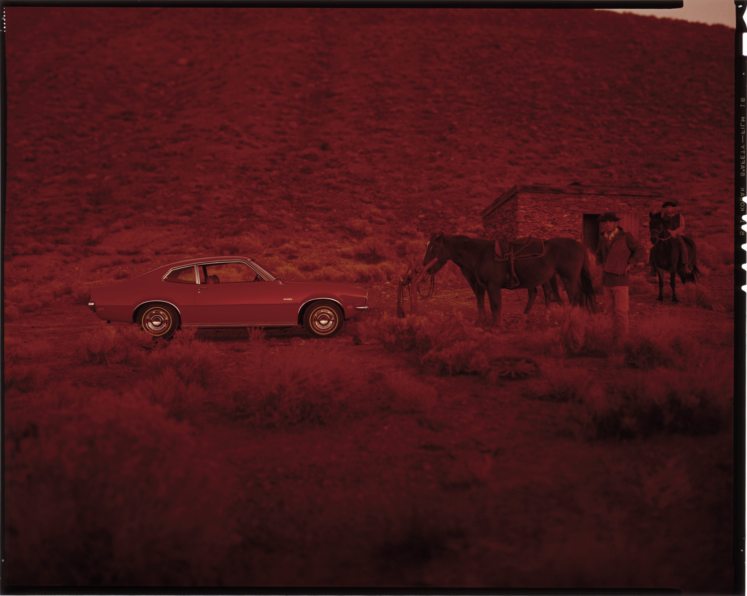 Favorite this☆ Ford Maverick automobile Description: View of a Ford Maverick coupe. Cowboys with horses on right. Label on sleeve: "Ford Motor Co., Ford Maverick, 1969-70." Details Resource ID: na035312 Creator: Boulevard Photographic (Firm) Subject: Maverick automobile Horses Advertising--Automobiles Transparencies Date Issued: 1969 to 1970 Format: 1 transparency : col. ; 8 x 10 in. Member of: National Automotive History Collection Mickey McGuire and Jim Northmore Boulevard Photographic Collection Filing Location: Ford, 5:16 Rights: Physical rights are retained by DPL. Copyright is retained in accordance with U.S. copyright laws.