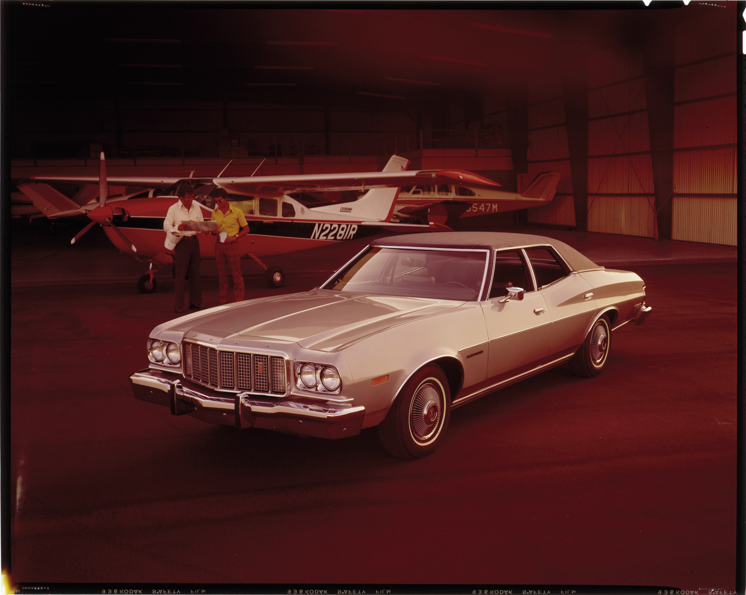 Favorite this☆ 1974 Ford Torino automobile Description: View of a 1974 Ford Torino coupe. Two men with airplanes in background. Label on sleeve: "Ford Motor Co., Ford Torino, 1974." Details Resource ID: na035409 Creator: Boulevard Photographic (Firm) Subject: Ford Torino automobile Airplanes Advertising--Automobiles Transparencies Date Issued: 1974 Format: 1 transparency : col. ; 8 x 10 in. Member of: National Automotive History Collection Mickey McGuire and Jim Northmore Boulevard Photographic Collection Filing Location: Ford, 6:16 Rights: Physical rights are retained by DPL. Copyright is retained in accordance with U.S. copyright laws.