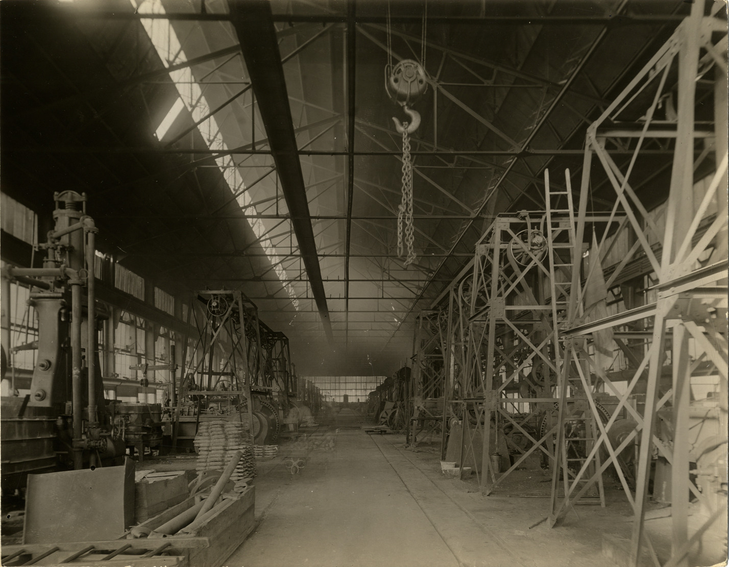View of the Drop Forge Department of the Maxwell Motor Company factory at New Castle, Indiana. Typed on back: "View of Drop Forge Department, New Castle, Ind." Handwritten on back: "Factories--Maxwell."