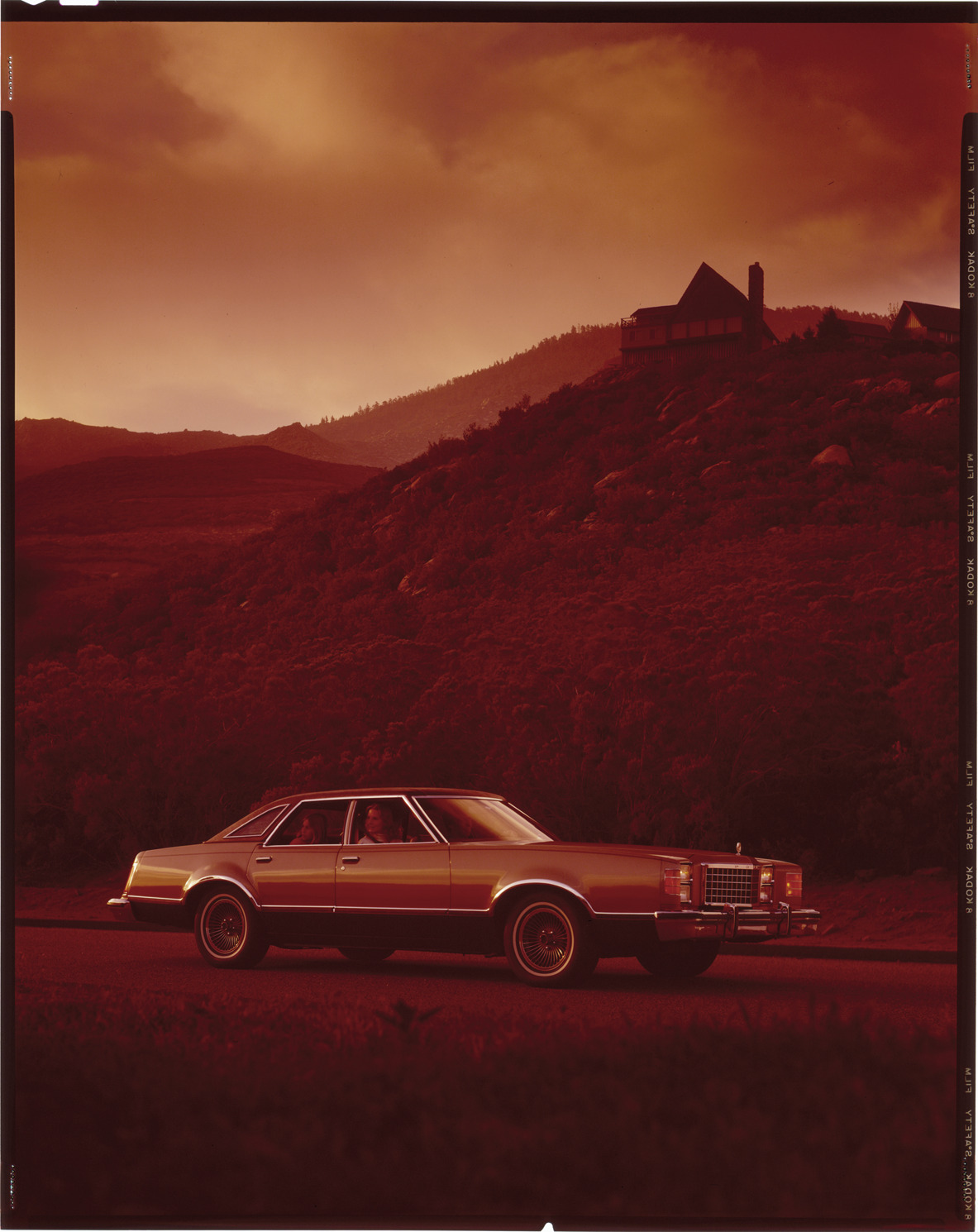 View of a family in a 1977 Ford LTD coupe. Label on sleeve: "Ford Motor Co., Ford, 1977."