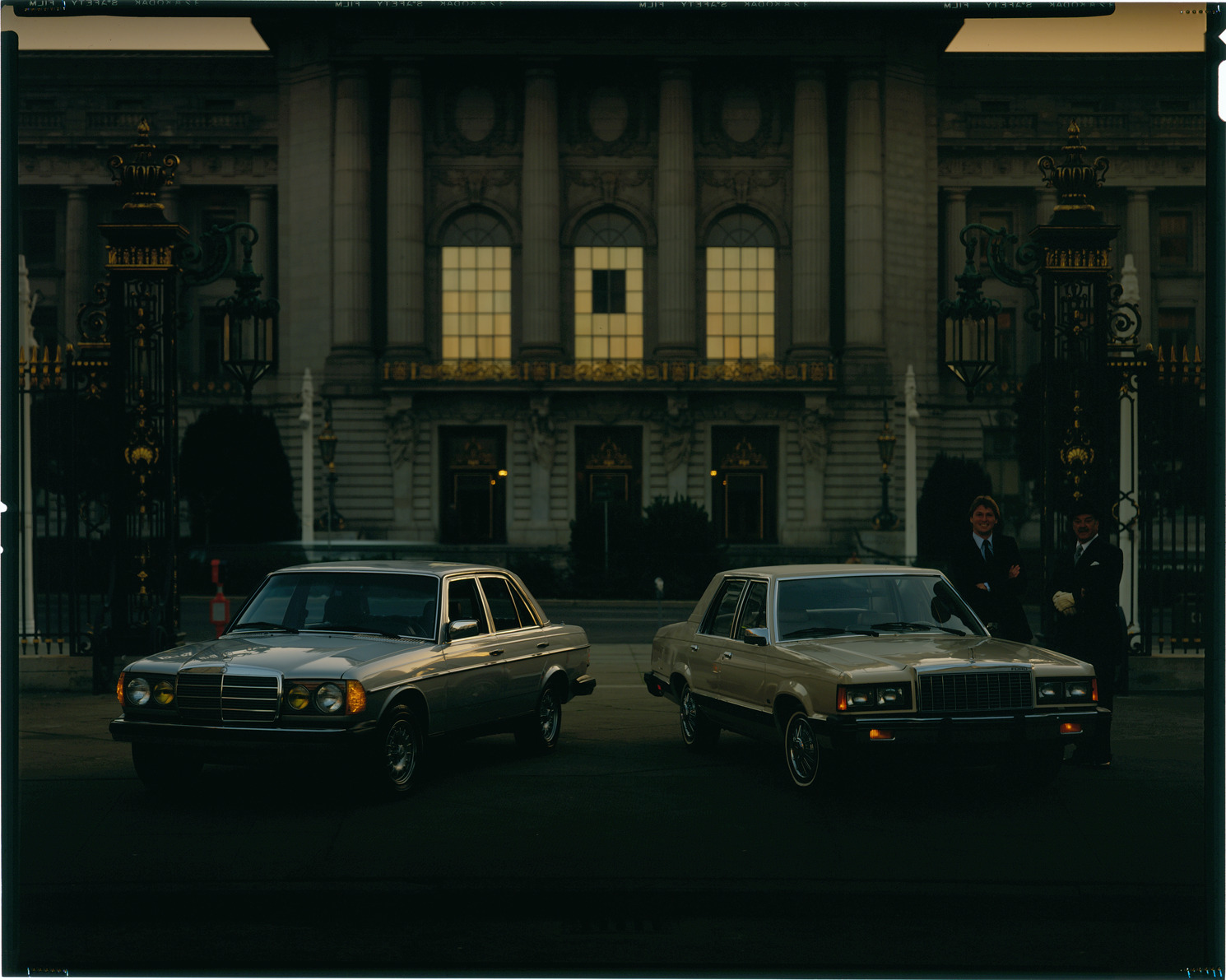 Favorite this☆ Ford Granada and Mercedes Benz automobiles Description: View of a Ford Granada sedan and a Mercedes Benz sedan parked in front of building. Label on sleeve: "Ford Motor Co., Ford advertising, Granada, Mercedes, 1981-82." Details Resource ID: na035795 Creator: Boulevard Photographic (Firm) Subject: Granada automobile Mercedes automobiles Advertising--Automobiles Transparencies Date Issued: 1981 to 1982 Format: 1 transparency : col. ; 8 x 10 in. Member of: National Automotive History Collection Filing Location: Ford, 8:6 Rights: Physical rights are retained by DPL. Copyright is retained in accordance with U.S. copyright laws.