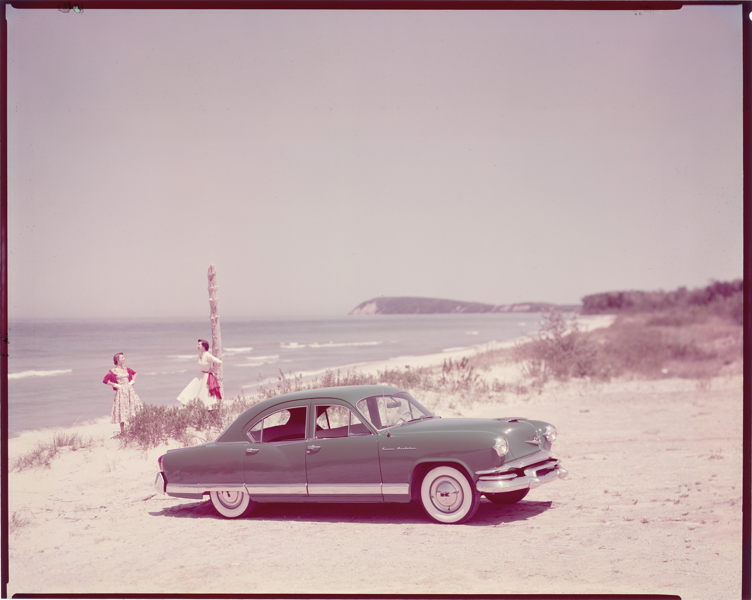 Favorite this☆ 1952 Kaiser Manhattan automobile Description: View of two women posing with a 1952 Kaiser Manhattan sedan on the beach. Label on sleeve: "Kaiser-Frazer. Kaiser Manhattan, 1952." Details Resource ID: na035811 Creator: Boulevard Photographic (Firm) Subject: Kaiser automobile Advertising--Automobiles Transparencies Date Issued: 1952 Format: 1 transparency : col. ; 8 x 10 in. Member of: National Automotive History Collection Mickey McGuire and Jim Northmore Boulevard Photographic Collection Filing Location: Kaiser, 9:4 Rights: Physical rights are retained by DPL. Copyright is retained in accordance with U.S. copyright laws.