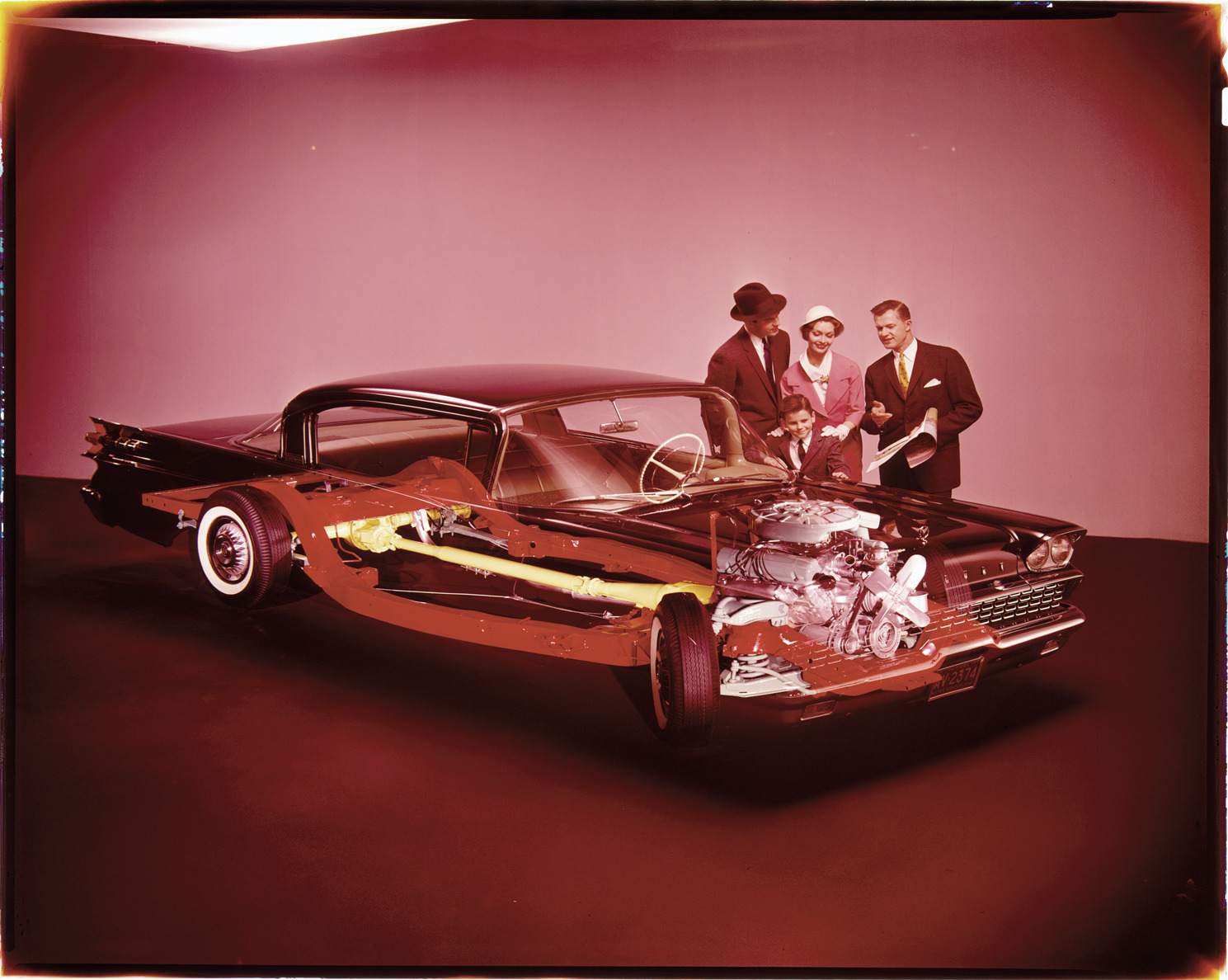 Favorite this☆ 1959 Mercury automobile Description: View of family and salesman posing with a 1959 Mercury coupe. Transparent view of car shows engine, drive train and other mechanical components. Label on sleeve: "Ford Motor Co., Mercury cutaway advertising, 1959." Details Resource ID: na036115 Creator: Boulevard Photographic (Firm) Subject: Mercury automobile Automobiles--Motors Advertising--Automobiles Transparencies Date Issued: 1959 Format: 1 transparency : col. ; 8 x 10 in. Member of: National Automotive History Collection Mickey McGuire and Jim Northmore Boulevard Photographic Collection Filing Location: Mercury, 10:7 Rights: Physical rights are retained by DPL. Copyright is retained in accordance with U.S. copyright laws.