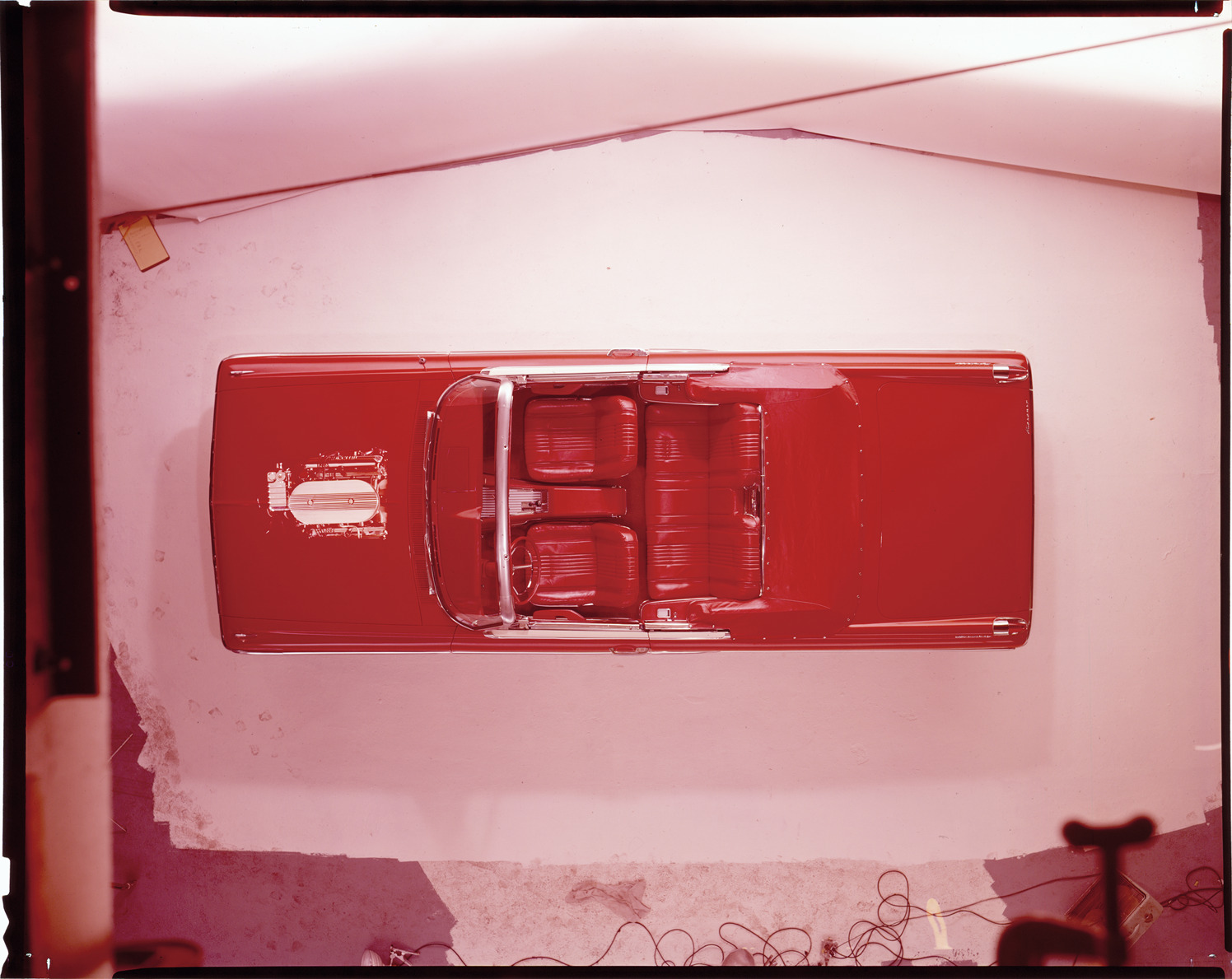 Overhead view of a 1962 Mercury convertible. Transparent view shows engine. Label on sleeve: "Ford Motor Co., Mercury convertible, 1962."