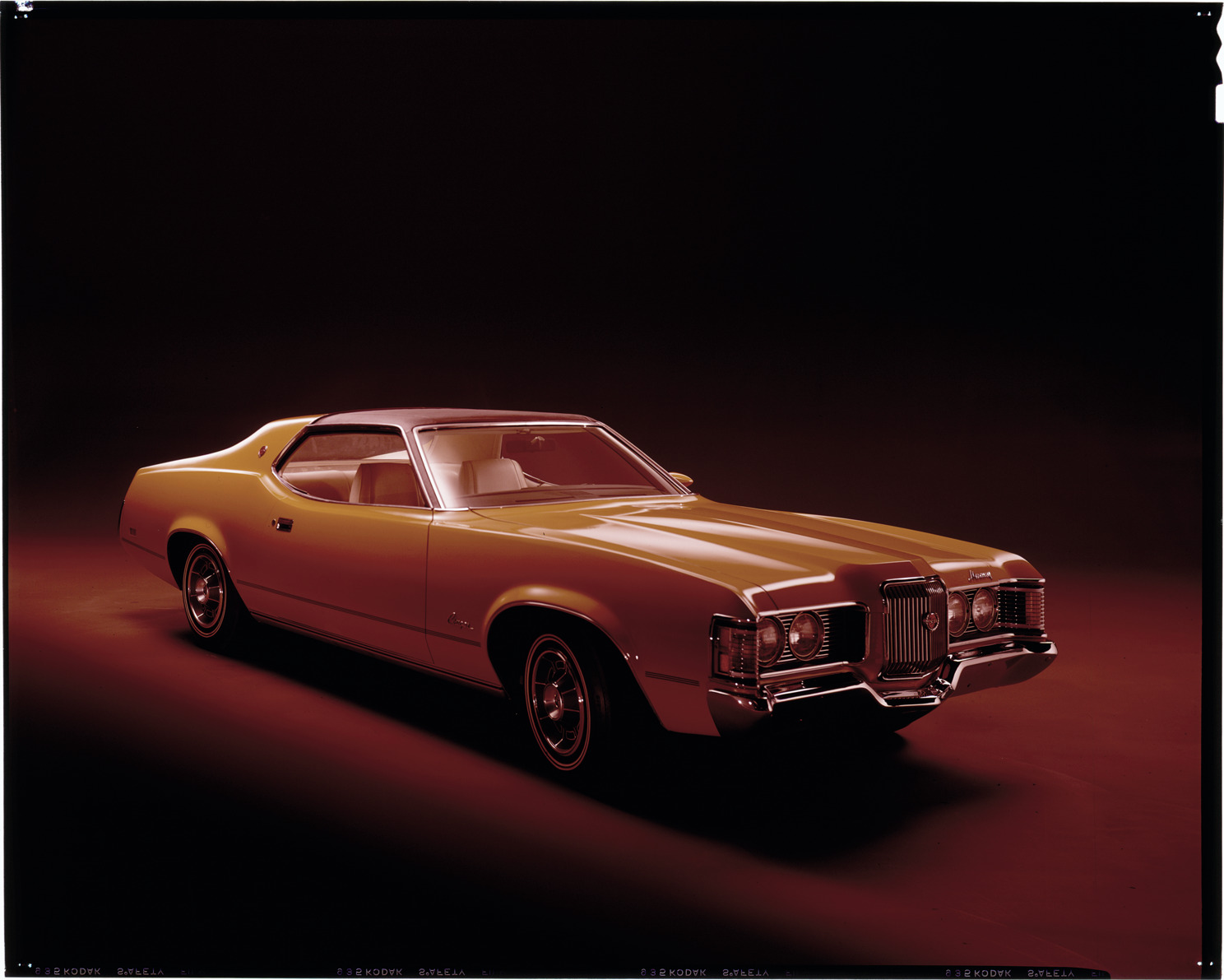 View of a 1971 Mercury Cougar coupe. Label on sleeve: "Ford Motor Co., Mercury Cougar, 1971."