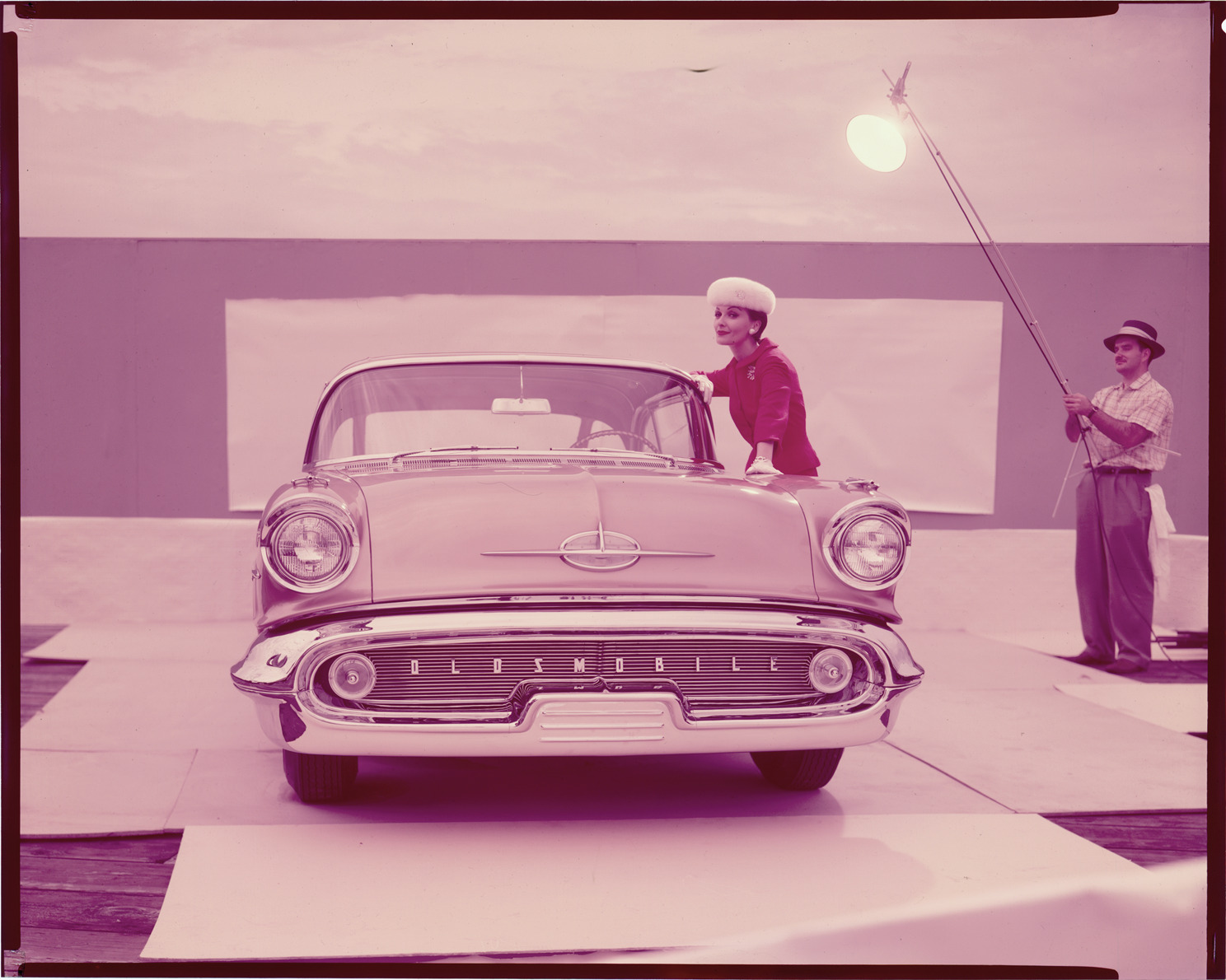 Favorite this☆ 1957 Oldsmobile automobile Description: View of a woman posing with a 1957 Oldsmobile. Photographer's assistant on right. Label on sleeve: "General Motors, Oldsmobile, front end, 1957." Details Resource ID: na036273 Creator: Boulevard Photographic (Firm) Subject: Oldsmobile automobile Photographic assistants Advertising--Automobiles Transparencies Date Issued: 1957 Format: 1 transparency : col. ; 8 x 10 in. Member of: National Automotive History Collection Mickey McGuire and Jim Northmore Boulevard Photographic Collection Filing Location: Oldsmobile, 11:4 Rights: Physical rights are retained by DPL. Copyright is retained in accordance with U.S. copyright laws.