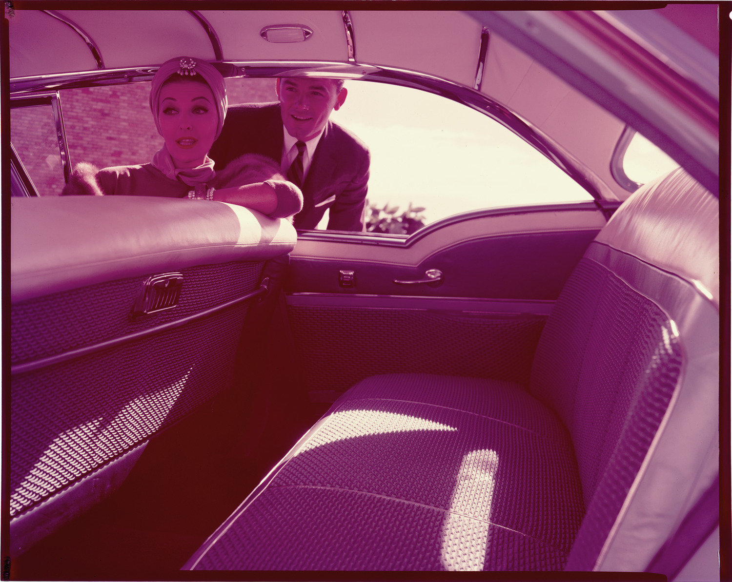 Favorite this☆ 1957 Oldsmobile automobile interior Description: View of a man and woman looking into the interior of an Oldsmobile sedan, showing rear seats. Label on sleeve: "General Motors, Oldsmobile, interior, 1957." Details Resource ID: na036281 Creator: Boulevard Photographic (Firm) Subject: Oldsmobile automobile Automobiles--Interiors Automobiles--Seats Advertising--Automobiles Transparencies Date Issued: 1957 Format: 1 transparency : col. ; 8 x 10 in. Member of: National Automotive History Collection Mickey McGuire and Jim Northmore Boulevard Photographic Collection Filing Location: Oldsmobile, 11:4 Rights: Physical rights are retained by DPL. Copyright is retained in accordance with U.S. copyright laws.