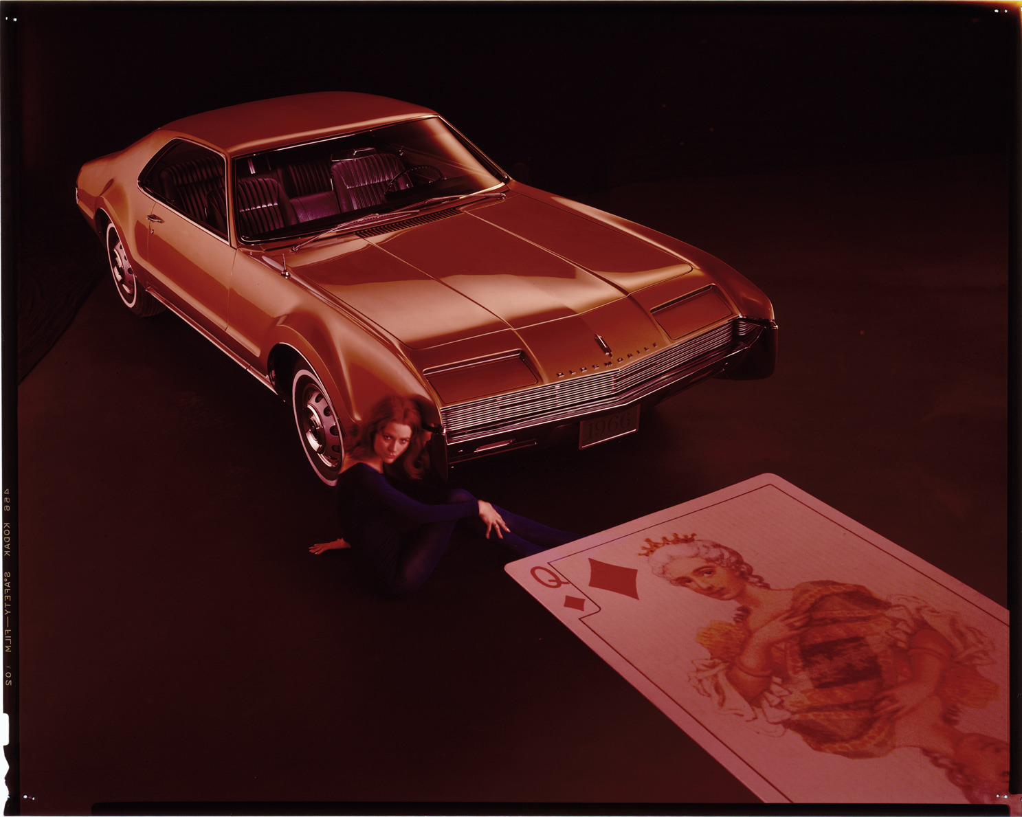 Favorite this☆ 1966 Oldsmobile Toronado automobile Description: View of a woman posing with a 1966 Oldsmobile Toronado coupe. Oversize playing card in foreground. Label on sleeve: "General Motors, Oldsmobile, Toronado, 1966." Details Resource ID: na036297 Creator: Boulevard Photographic (Firm) Subject: Toronado automobile Playing Cards Advertising--Automobiles Transparencies Date Issued: 1966 Format: 1 transparency : col. ; 8 x 10 in. Member of: National Automotive History Collection Mickey McGuire and Jim Northmore Boulevard Photographic Collection Filing Location: Oldsmobile, 11:6 Rights: Physical rights are retained by DPL. Copyright is retained in accordance with U.S. copyright laws.