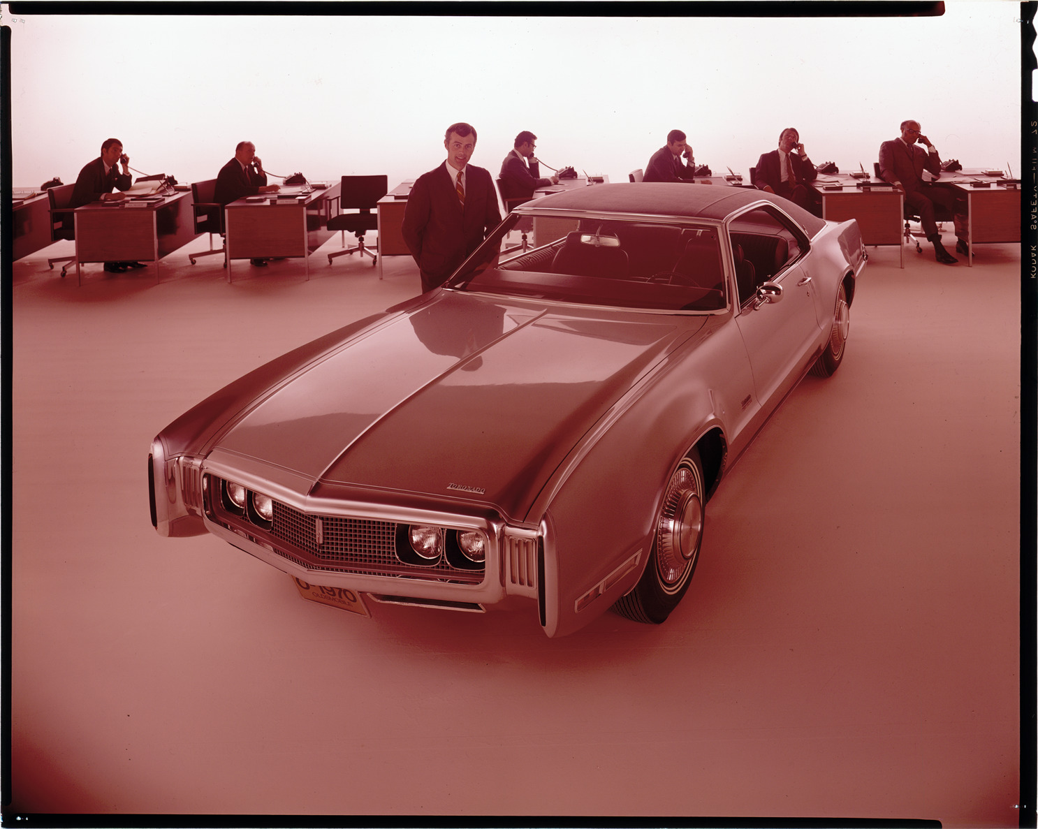Favorite this☆ 1970 Oldsmobile Toronado automobile Description: View of a man posing with a 1970 Oldsmobile Toronado coupe. Businessmen at desks, talking on telephones, in background. Label on sleeve: "General Motors, Oldsmobile Toronado, 1970." Details Resource ID: na036387 Creator: Boulevard Photographic (Firm) Subject: Toronado automobile Desks Advertising--Automobiles Transparencies Date Issued: 1970 Format: 1 transparency : col. ; 8 x 10 in. Member of: National Automotive History Collection Mickey McGuire and Jim Northmore Boulevard Photographic Collection Filing Location: Oldsmobile, 11:15 Rights: Physical rights are retained by DPL. Copyright is retained in accordance with U.S. copyright laws.